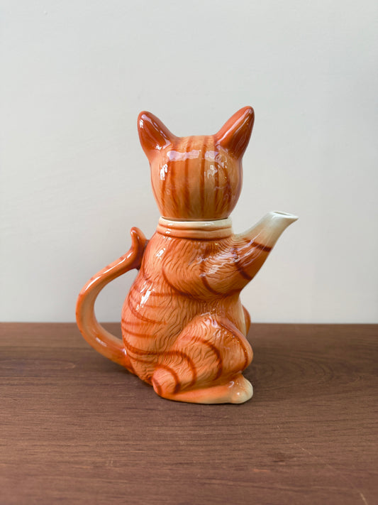 Vintage Cat Teapot 'Pussyfoot' by Tony Wood Studio - Ginger Cat, 1980s