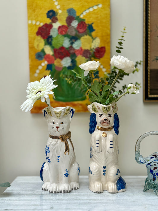 Vintage Staffordshire Dog Style Jug/Pitcher with Blue Floral Pattern by Royale Stratford