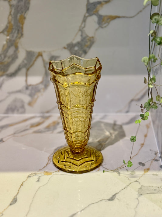 Vintage Amber Pressed Glass Vase by Sowerby | Model 2592 (C. 1938)