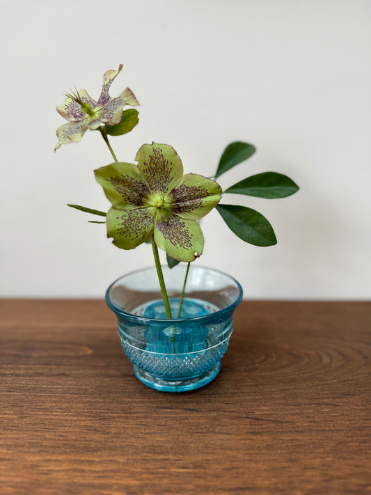 Vintage Blue Pressed Glass Vase with Flower Frog - Geo. Davidson & Co., Design from 1906