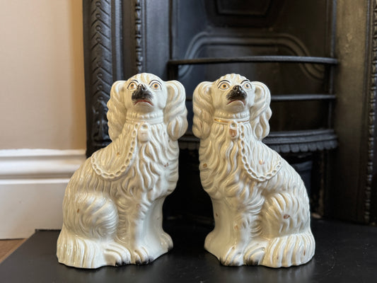 アンティーク、白地に金彩のスタッフォードシャードッグ、ペア|19世紀