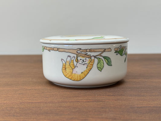 ヴィンテージ、ビレロイ&ボッホ「リトルキャット」 蓋付き丸型の磁器製小物入れ - 1970年代頃
