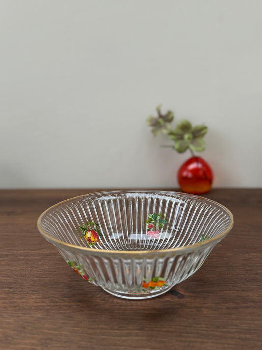 ヴィンテージ、フルーテッドガラスのフルーツボウル:フルーツ柄