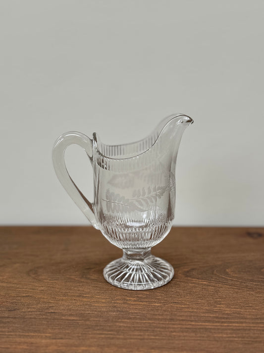 アンティーク 脚付きプレスガラス製 ミルクジャグ