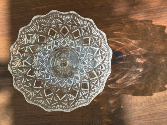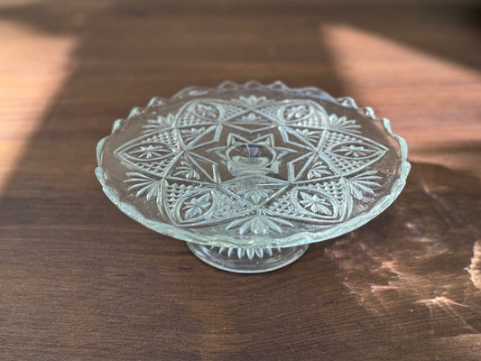 ヴィンテージ、プレスガラスの脚付きケーキスタンド