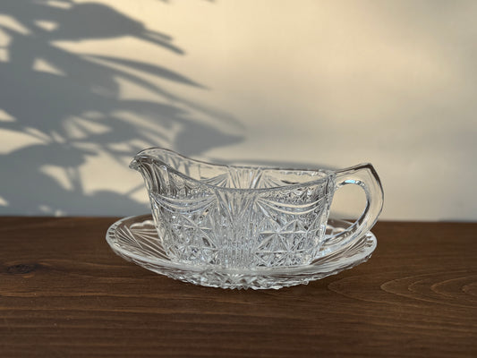 ヴィンテージ プレスガラス、ソースボート&ソーサー 、クリア|コンパクトサイズ
