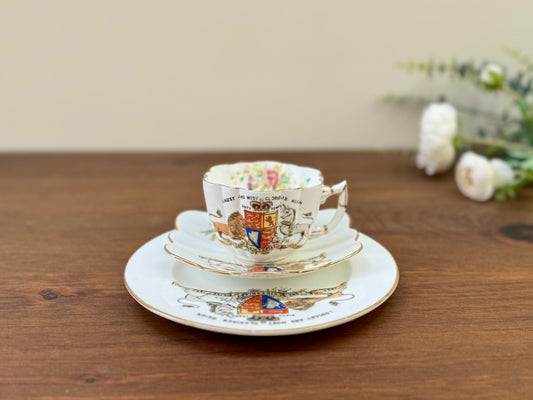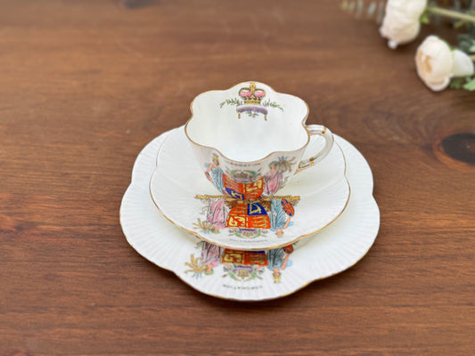 フォーリー社製 エドワード7世&アレクサンドラ王妃 戴冠記念 ティーカップ・トリオ(1902年)|フルーテッド&スカラップの英国アンティーク