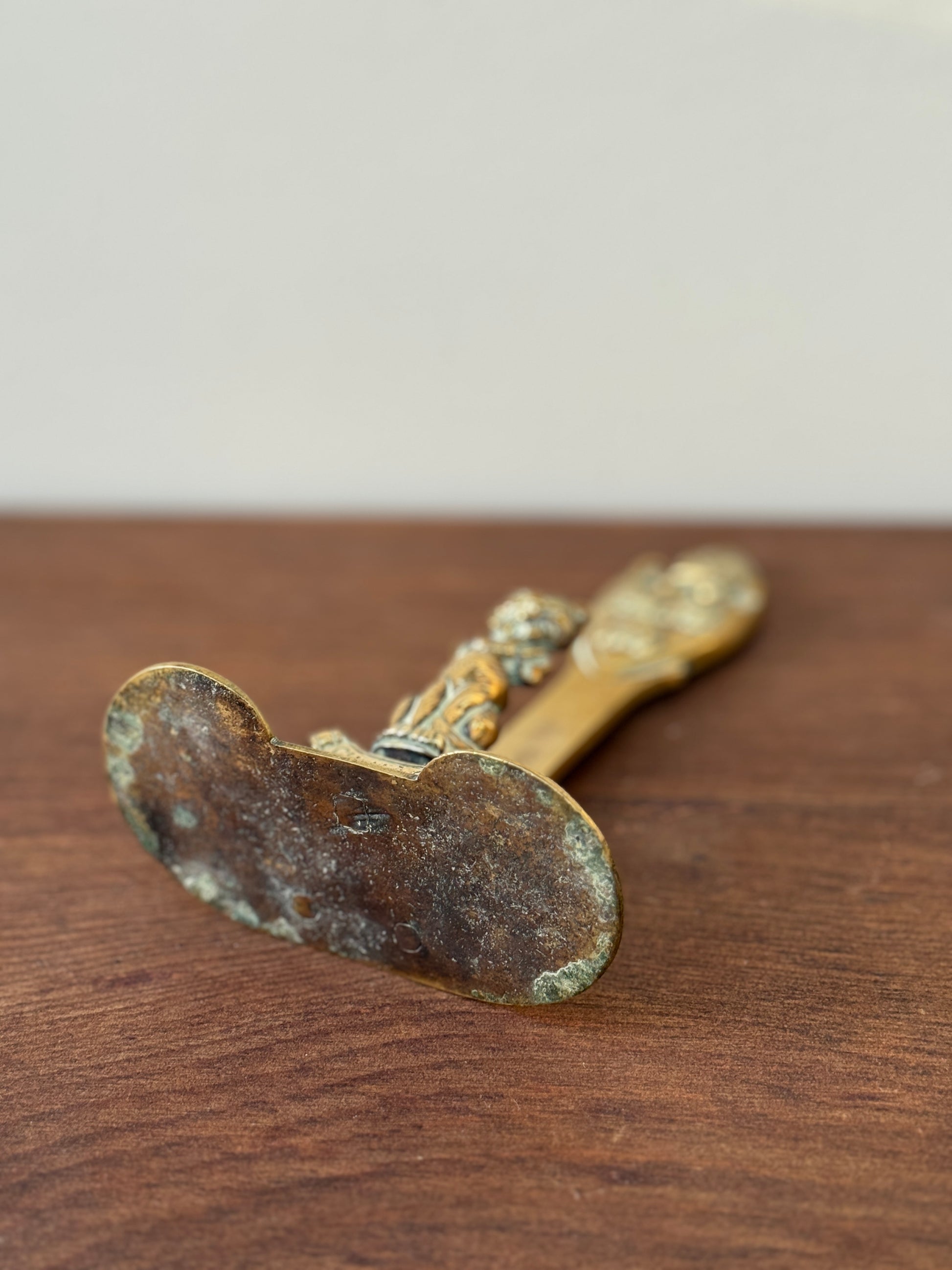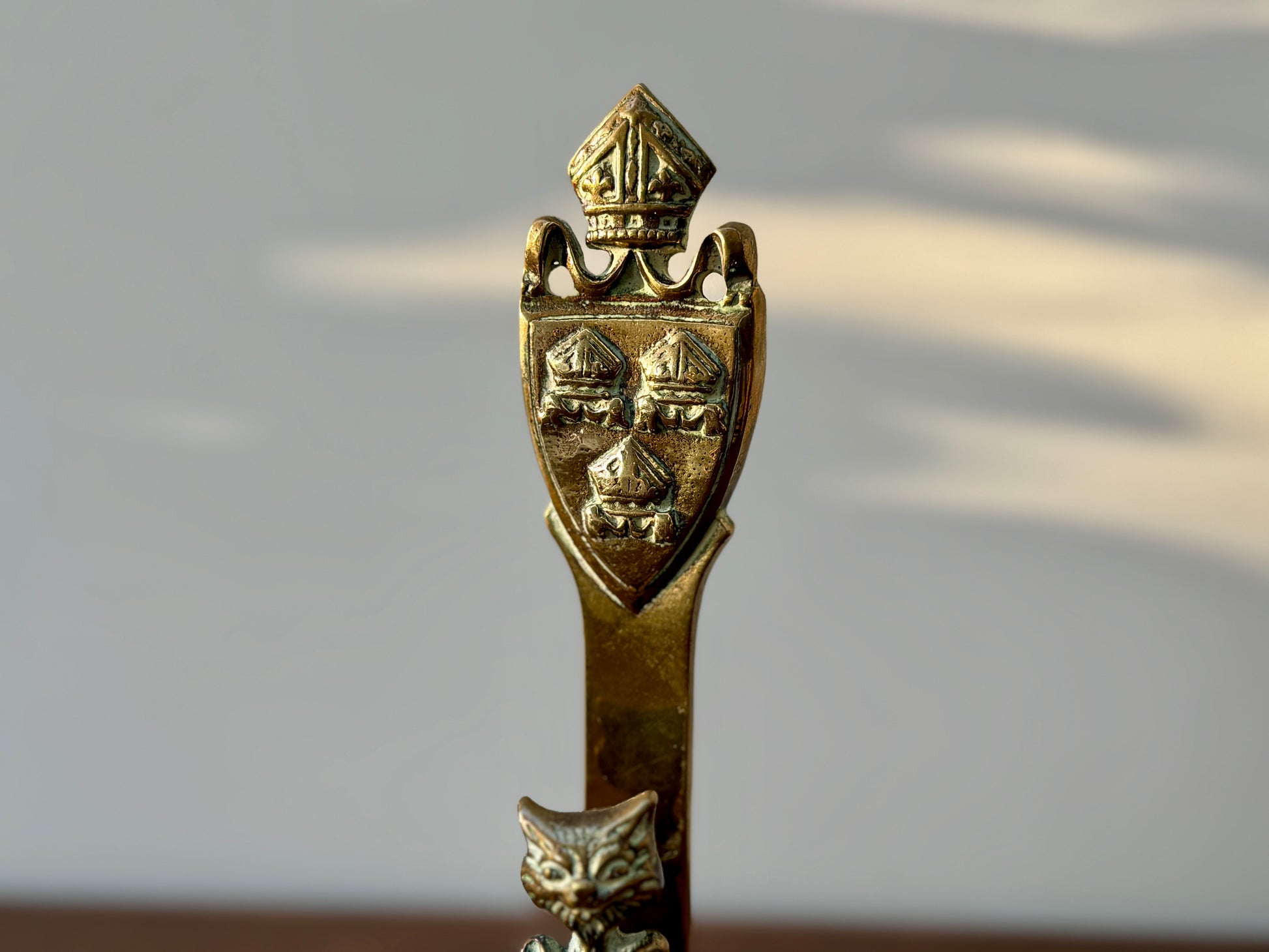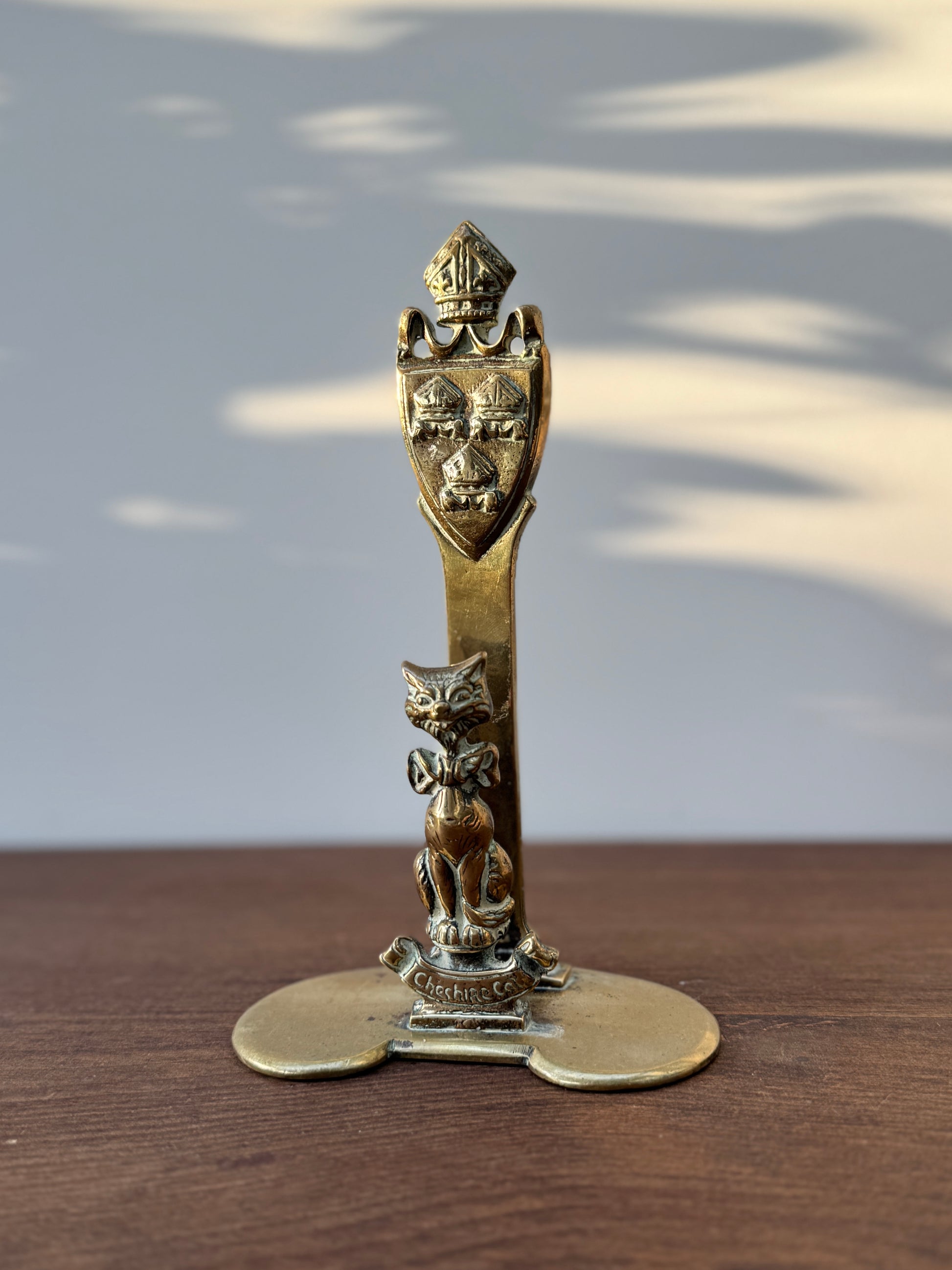 アンティーク、真鍮製レターホルダー「チェシャ猫とチェシャ州の紋章」|エドワーディアン期