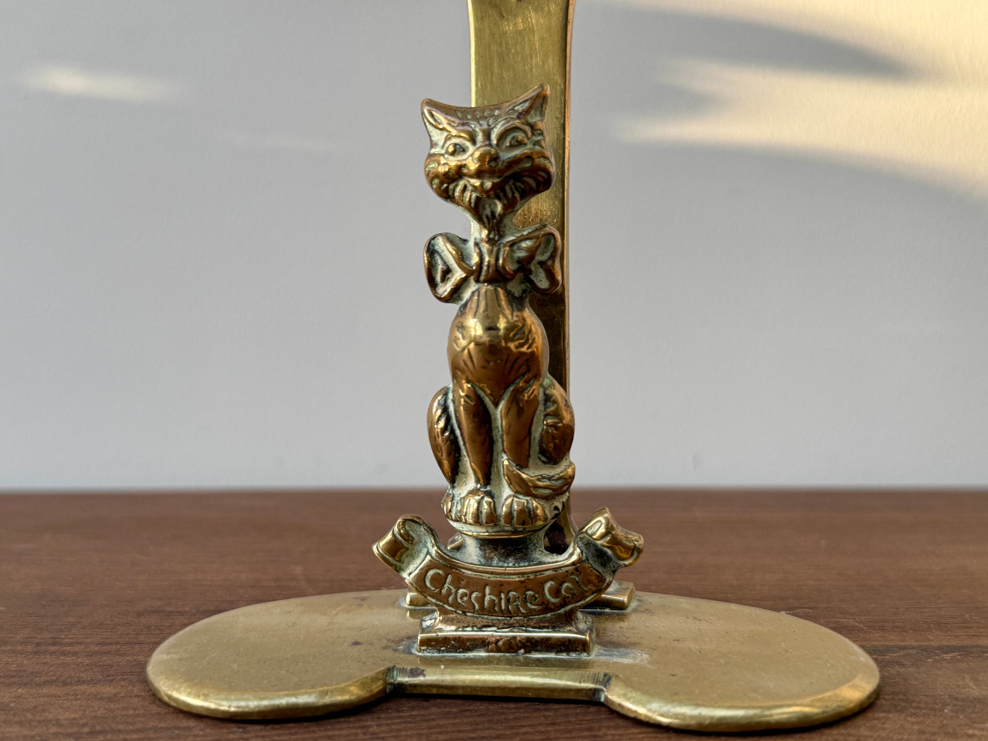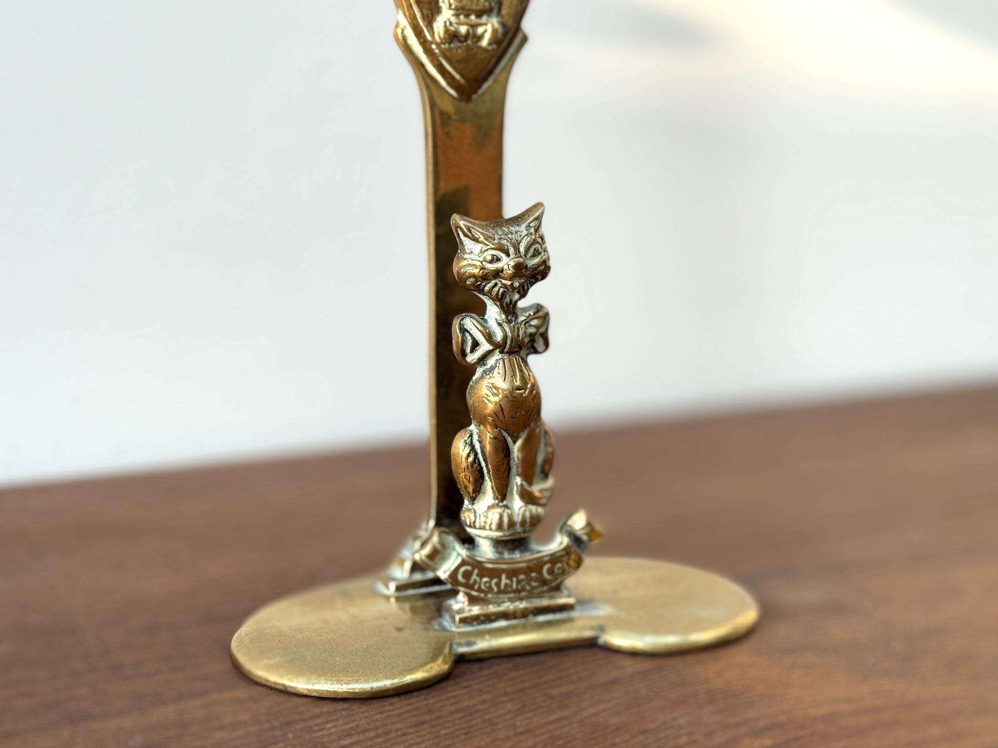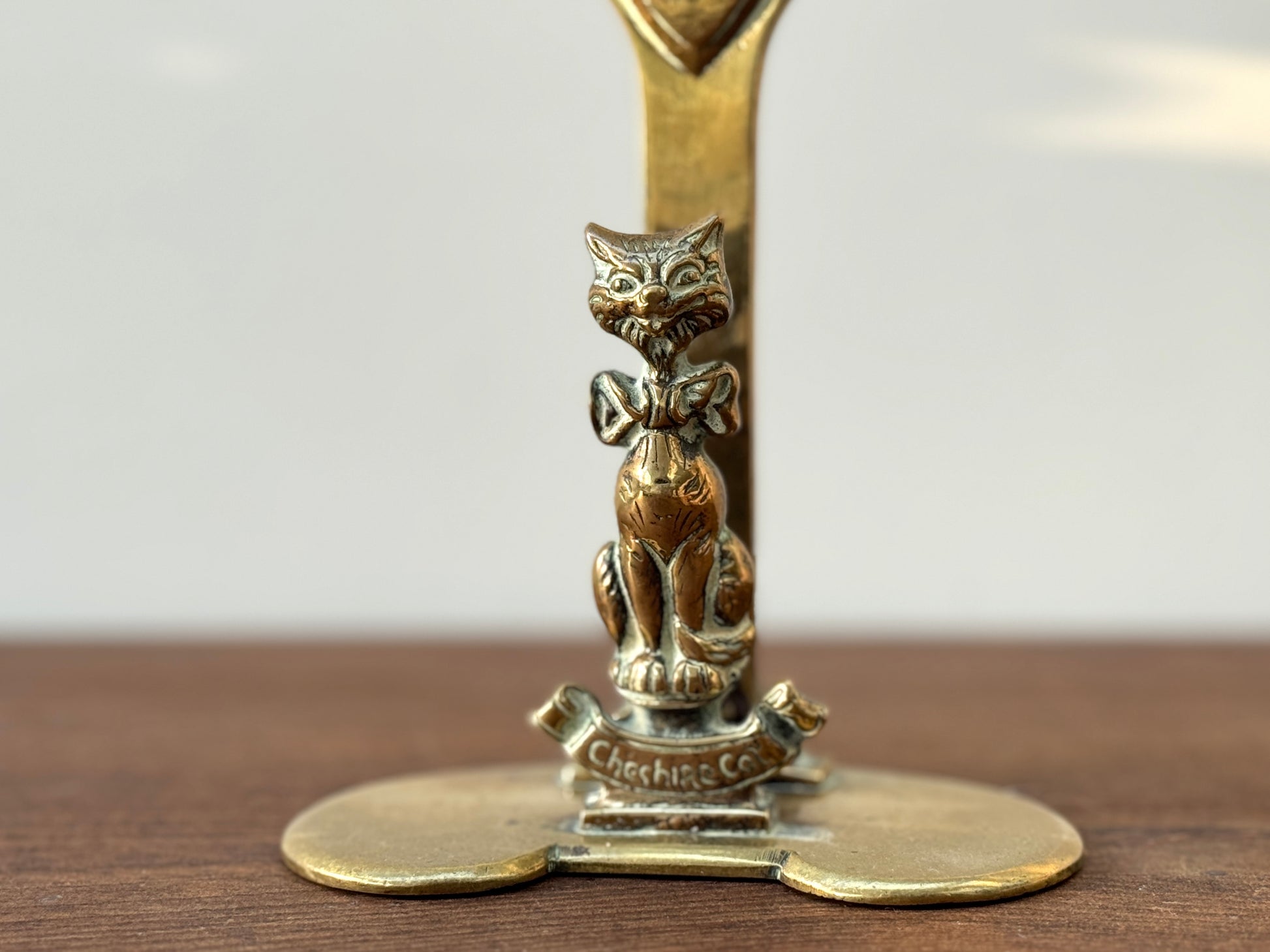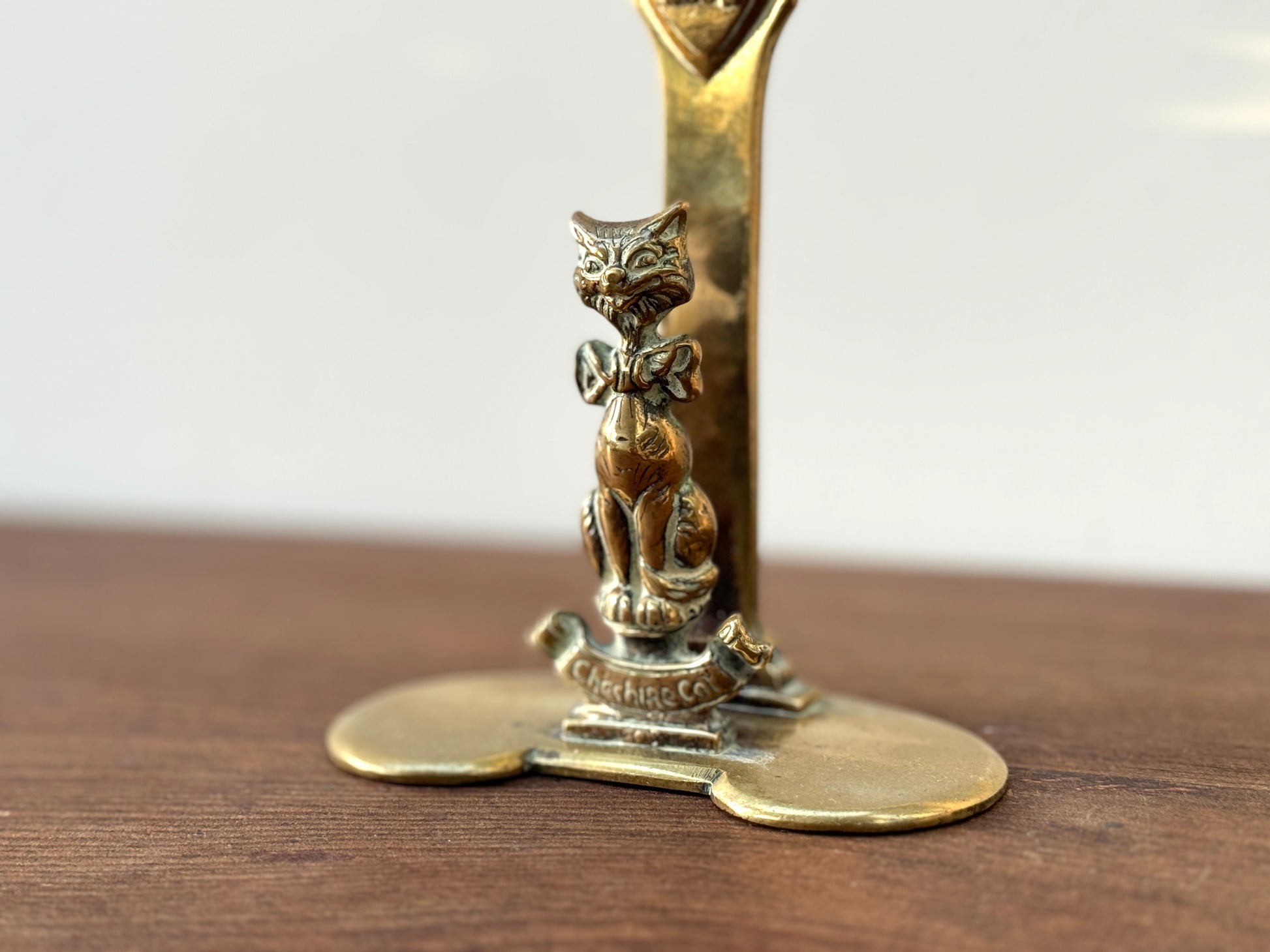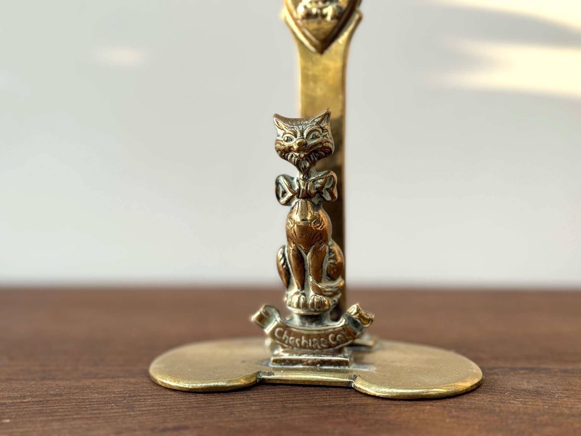 イギリス・チェシャ州の紋章と、ルイス・キャロル「不思議の国のアリス」に登場するチェシャ猫をモチーフにした、アンティークの真鍮製レターホルダーです。おそらく20世紀初頭、エドワーディアン期に作られたものと思われます。