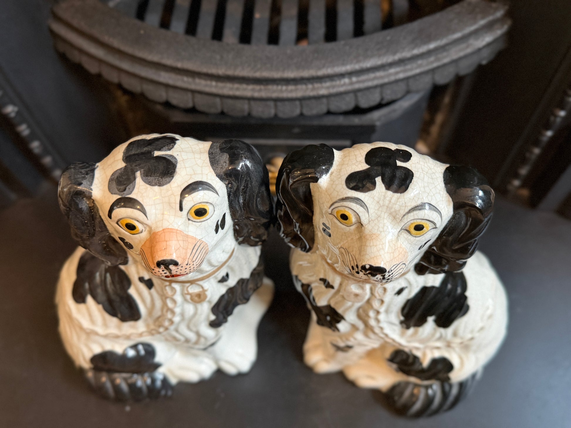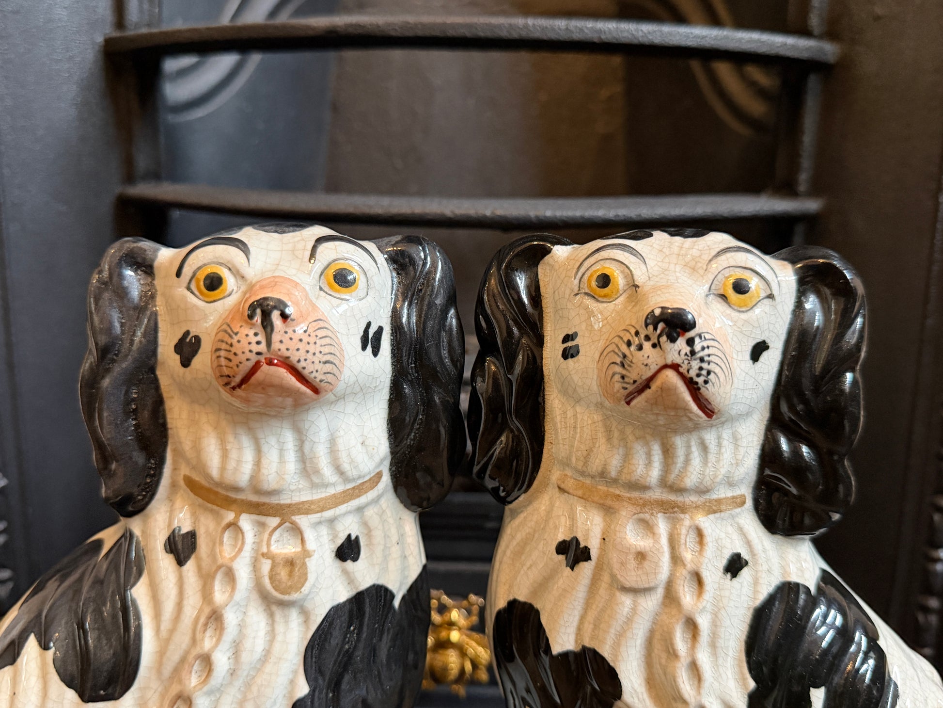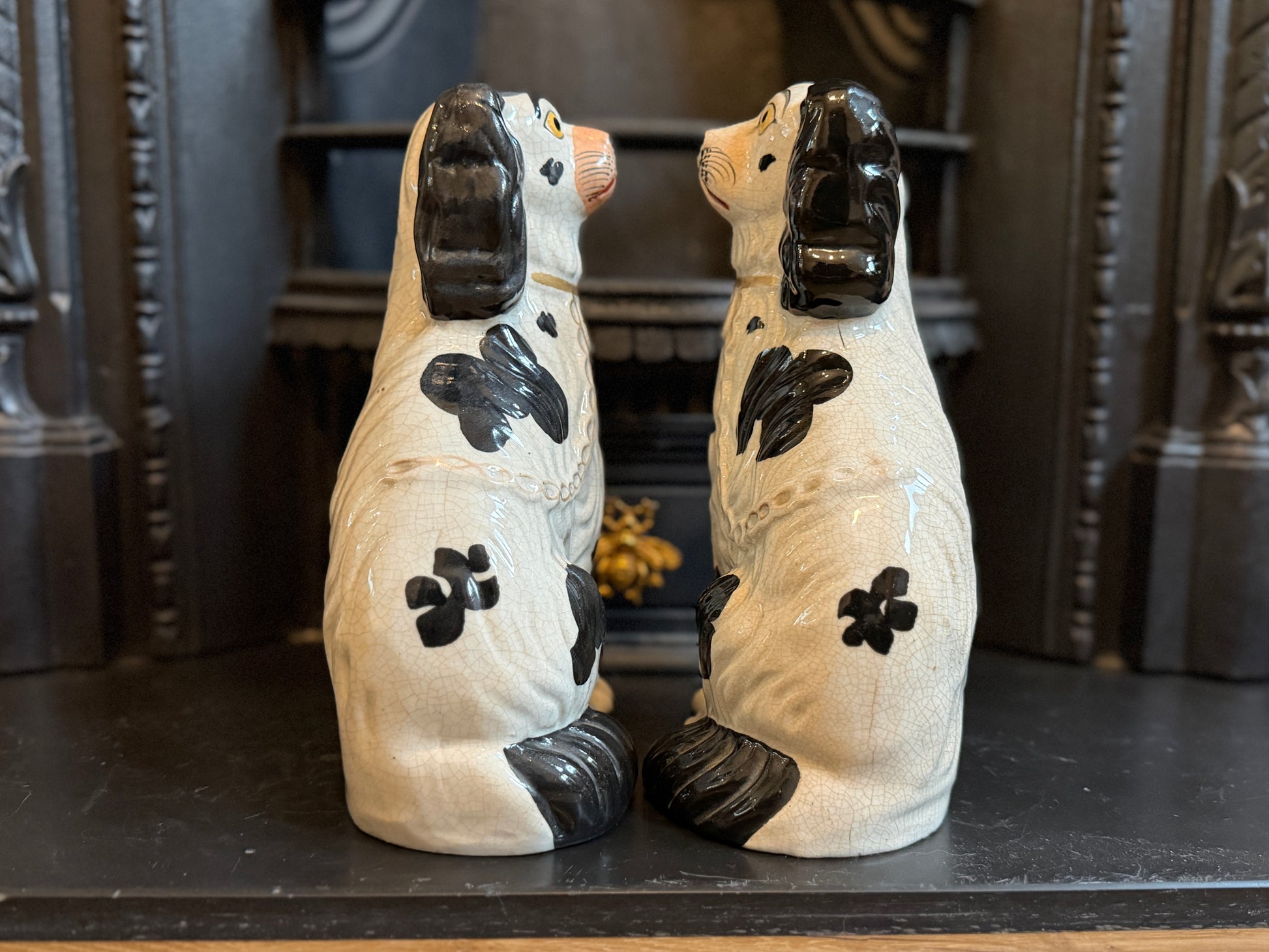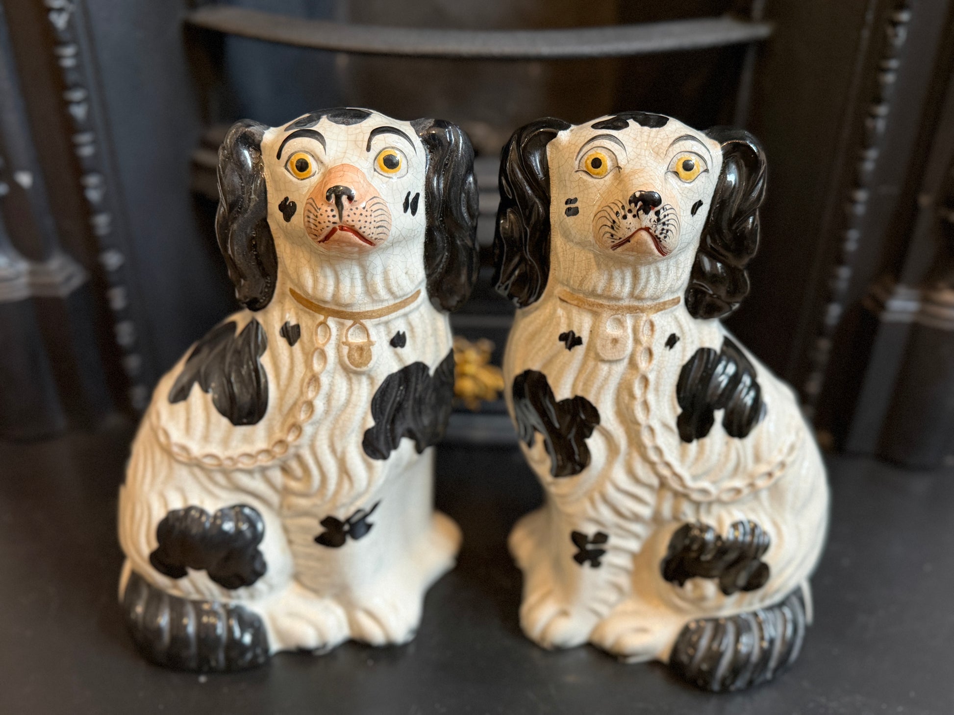 非常に良好なアンティークコンディションです。この年代のスタッフォードシャードッグをペアで、かつヒビや修復のない状態で見つけるのは非常に稀です。