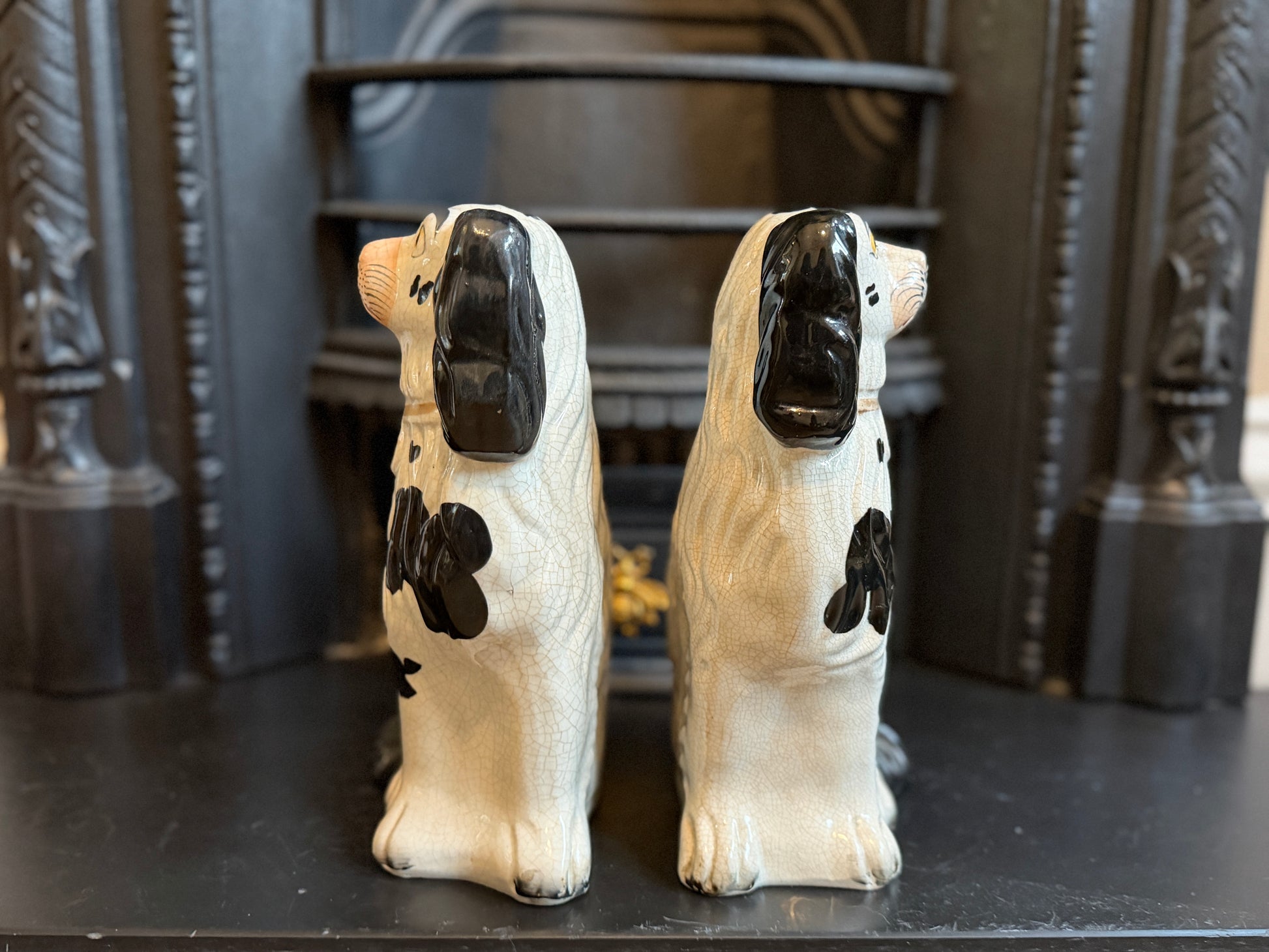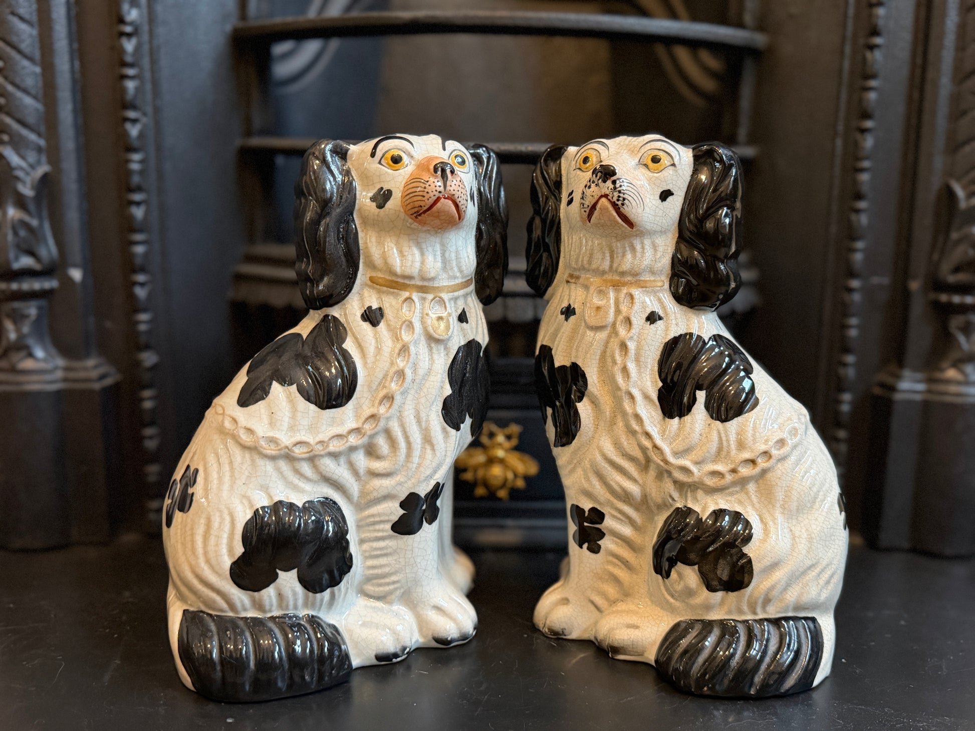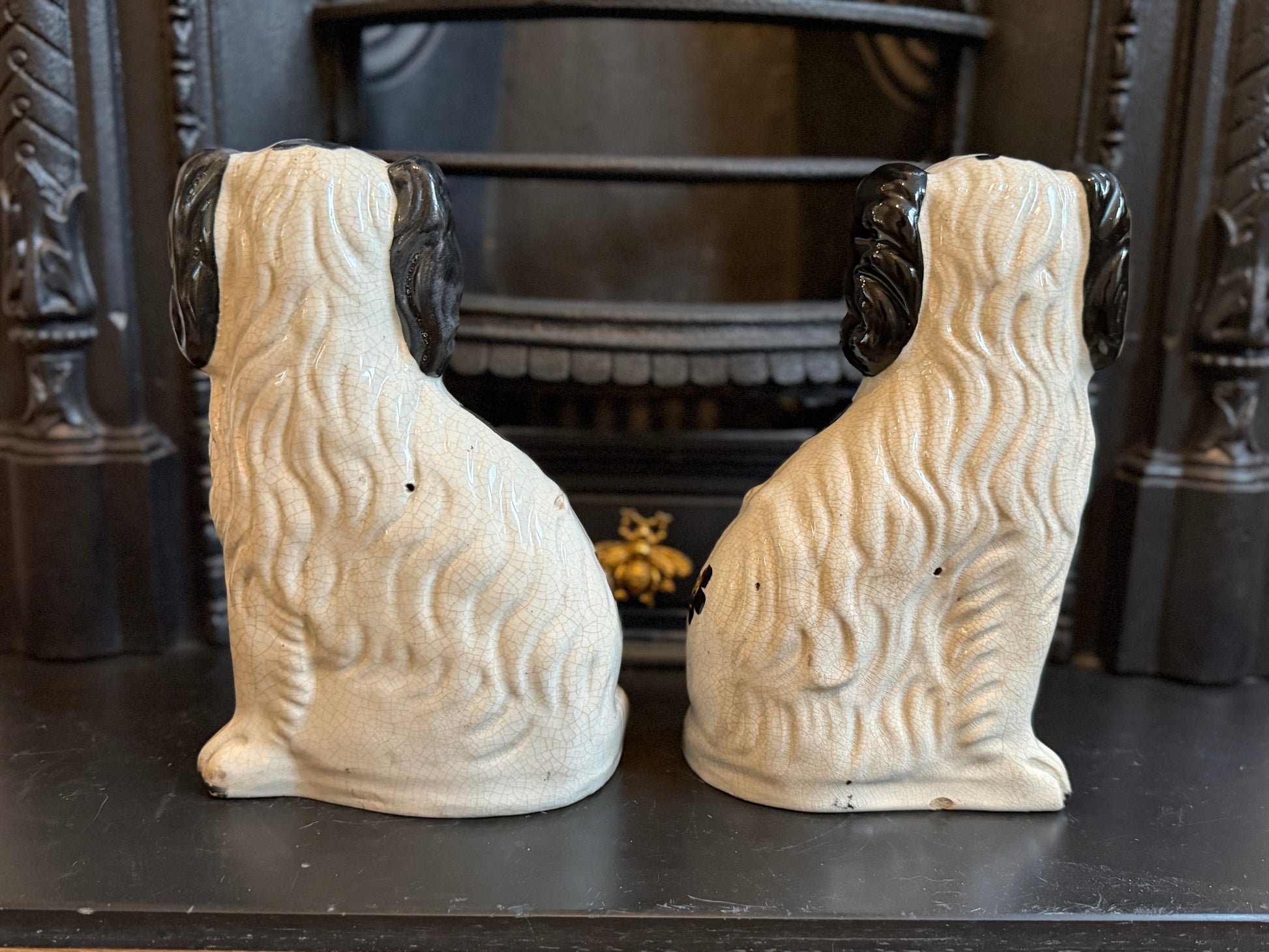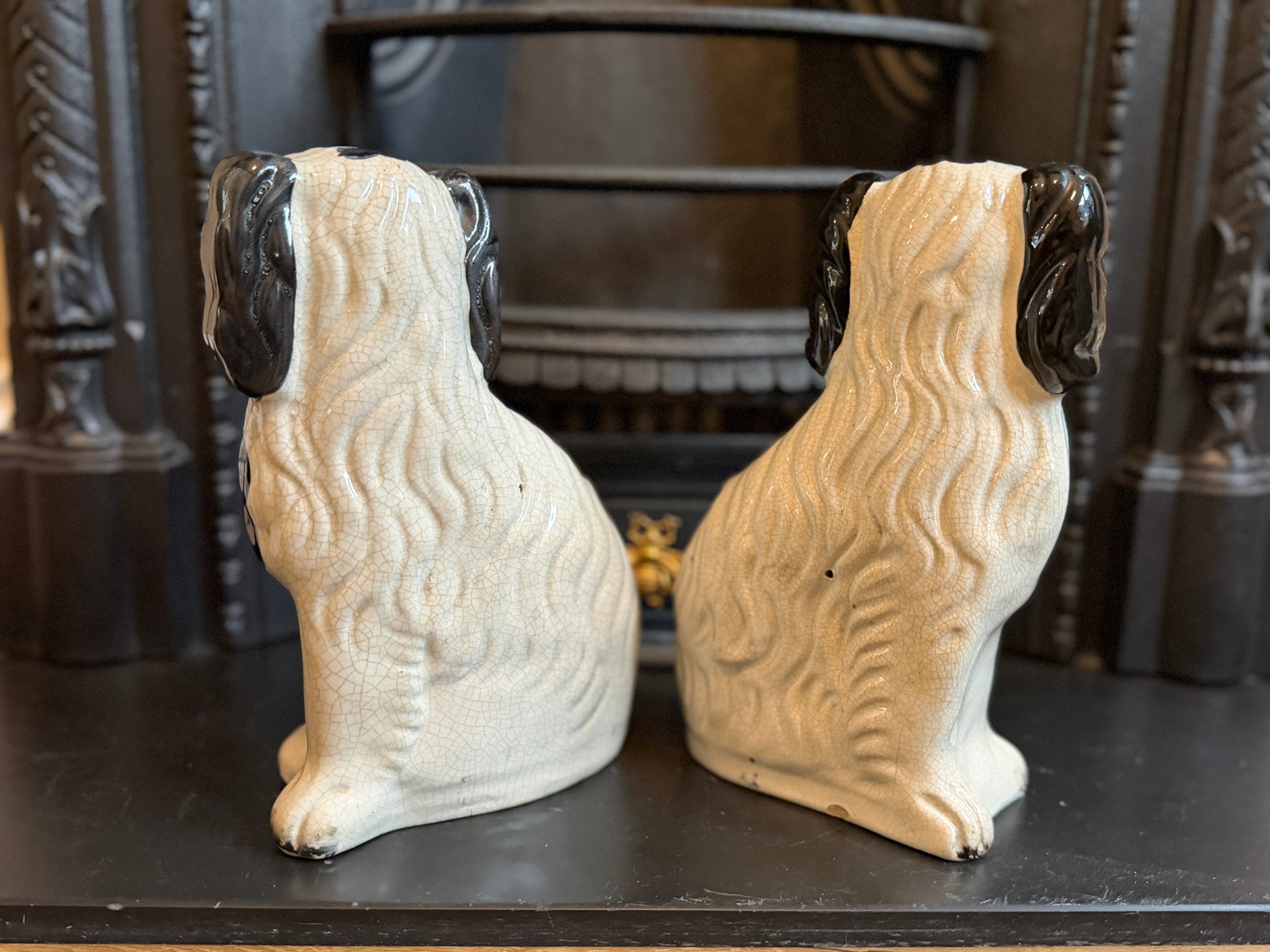 非常に良好なアンティークコンディションです。この年代のスタッフォードシャードッグをペアで、かつヒビや修復のない状態で見つけるのは非常に稀です。