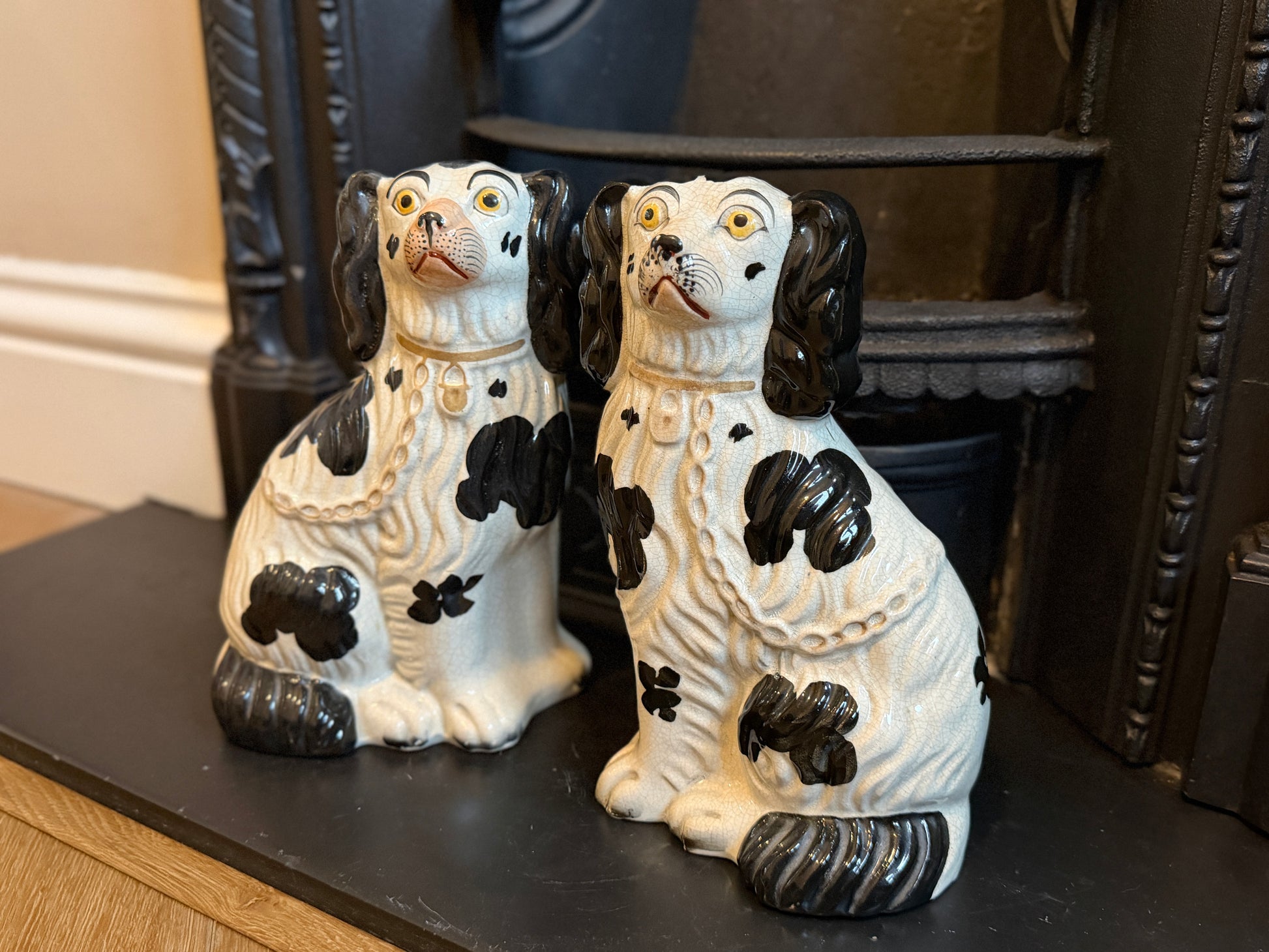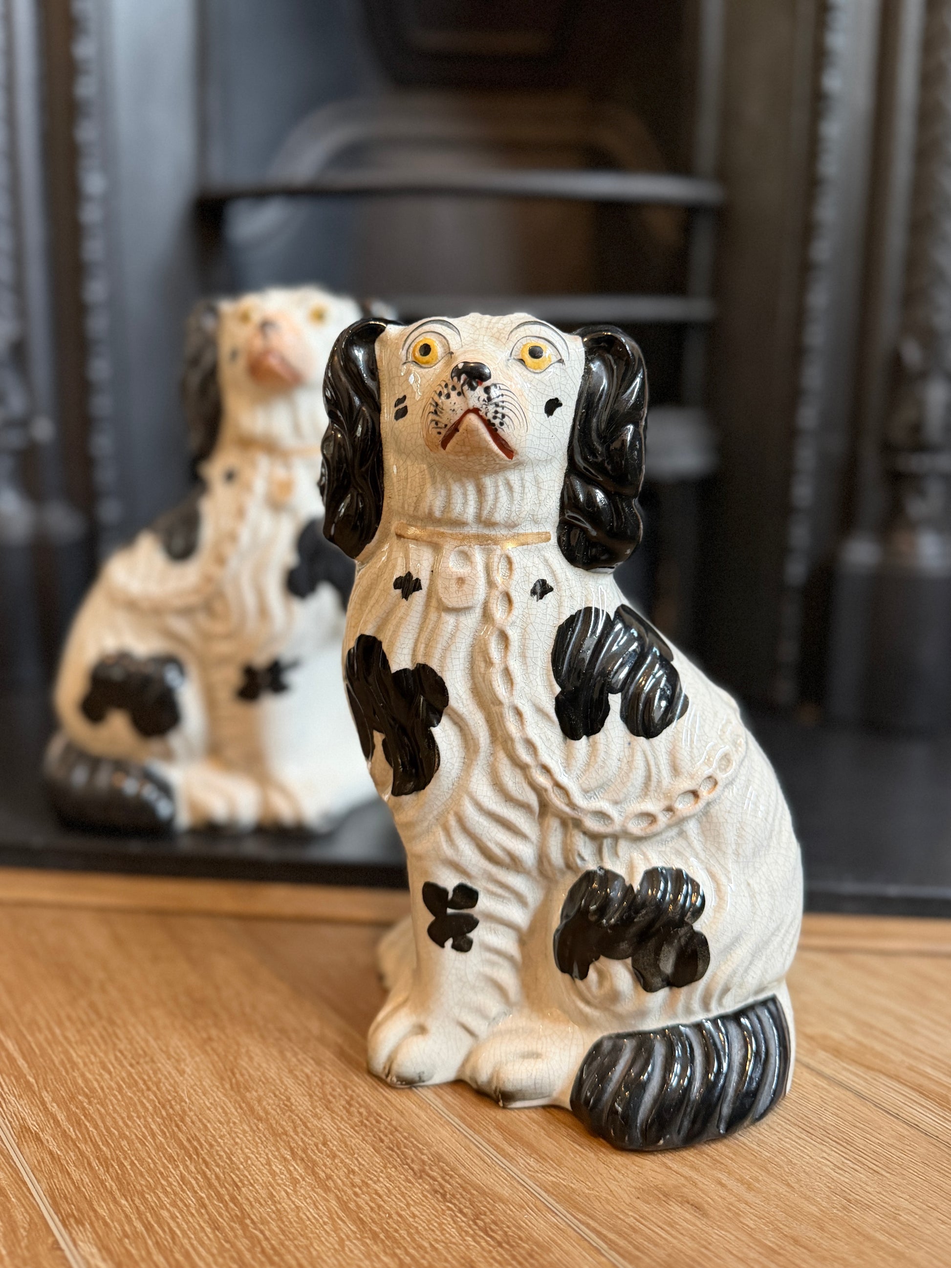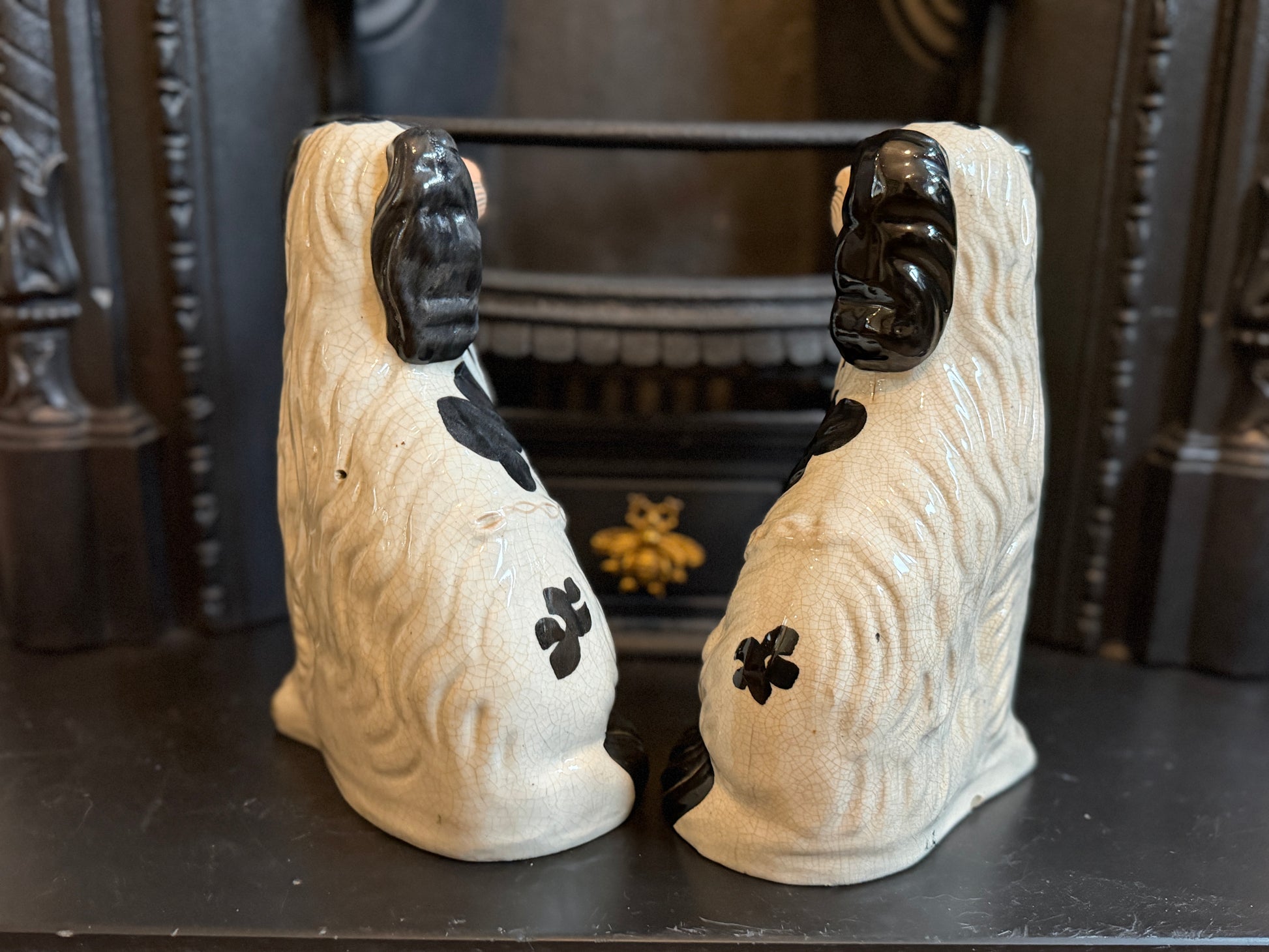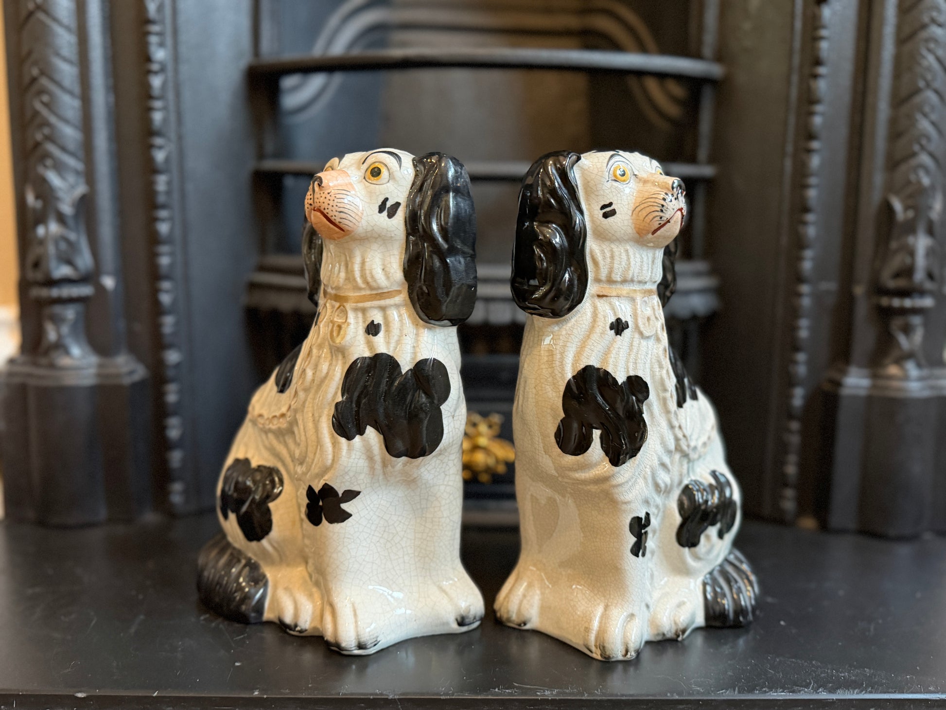 非常に良好なアンティークコンディションです。この年代のスタッフォードシャードッグをペアで、かつヒビや修復のない状態で見つけるのは非常に稀です。