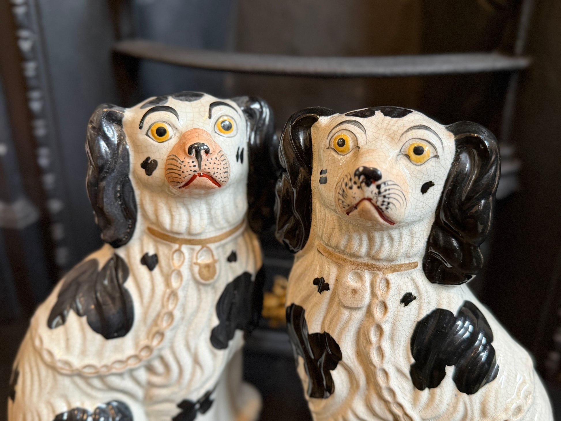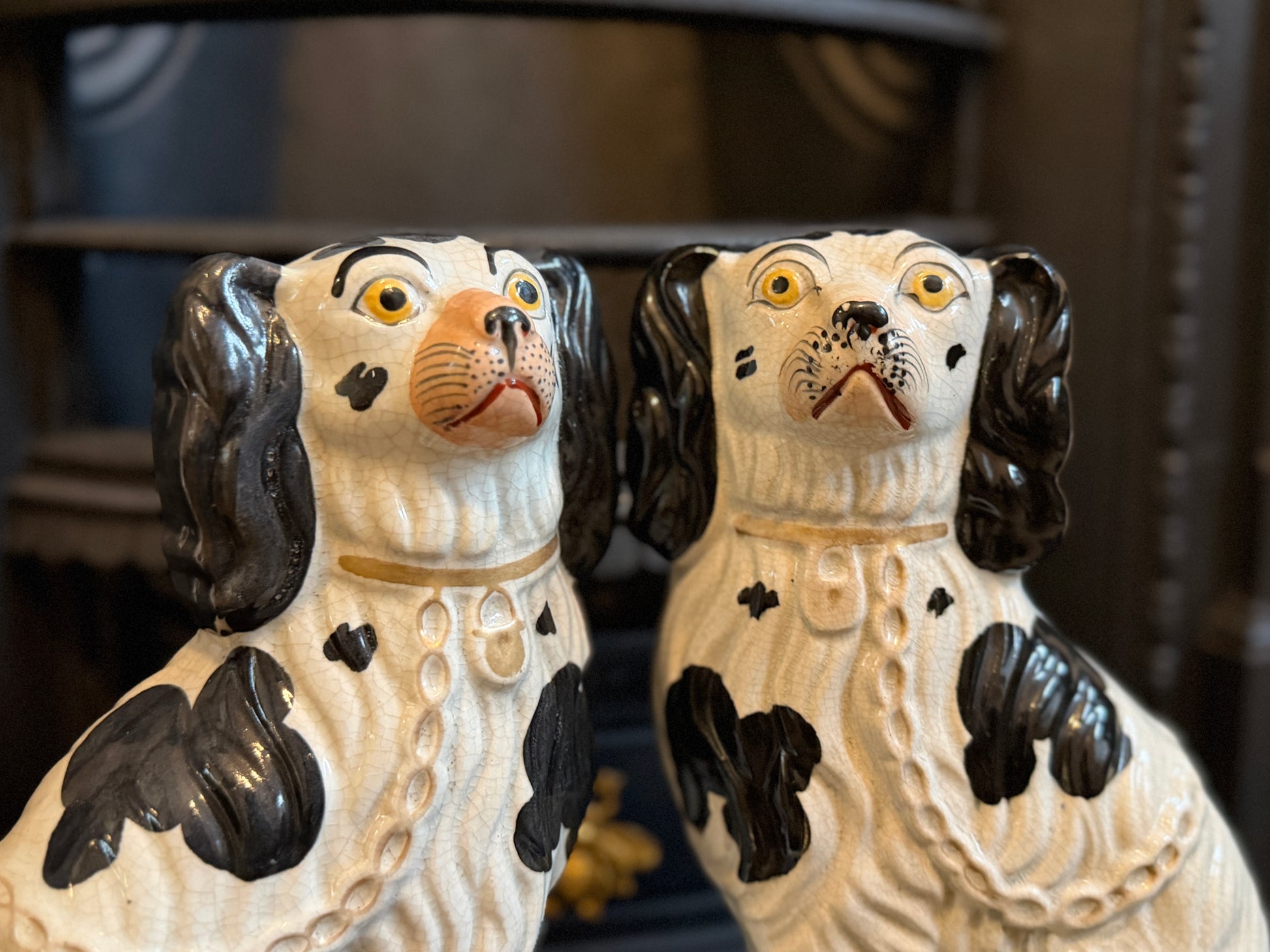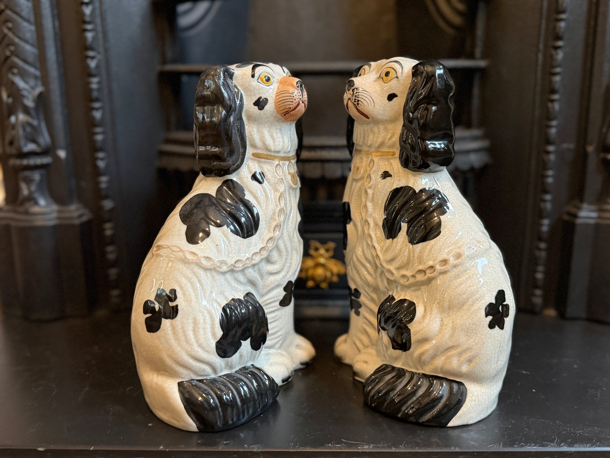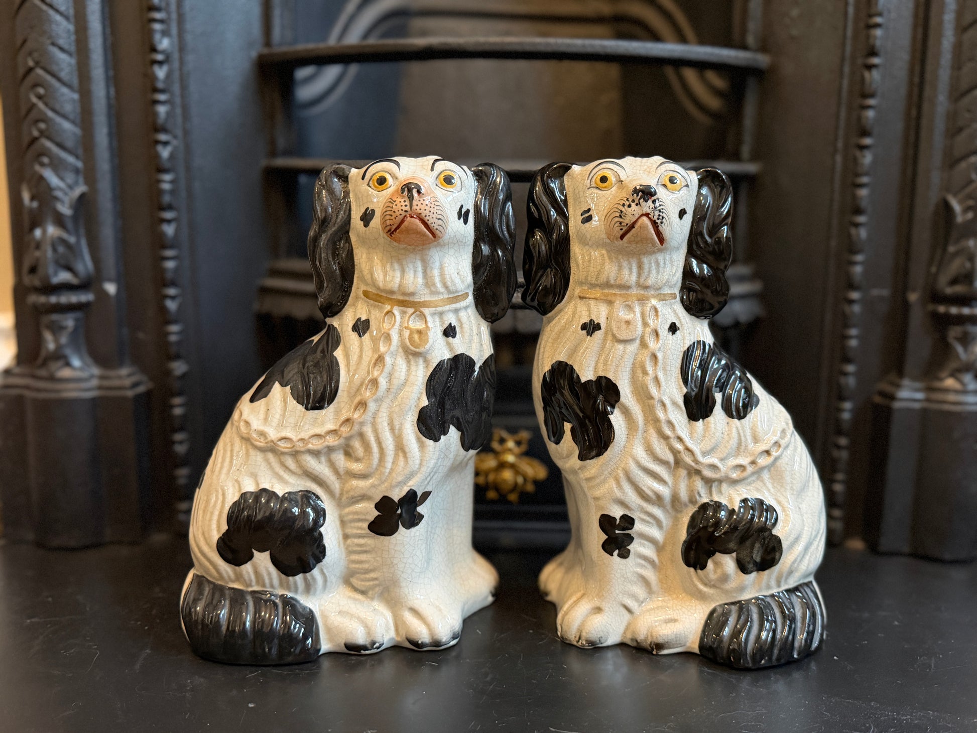 非常に良好なアンティークコンディションです。この年代のスタッフォードシャードッグをペアで、かつヒビや修復のない状態で見つけるのは非常に稀です。