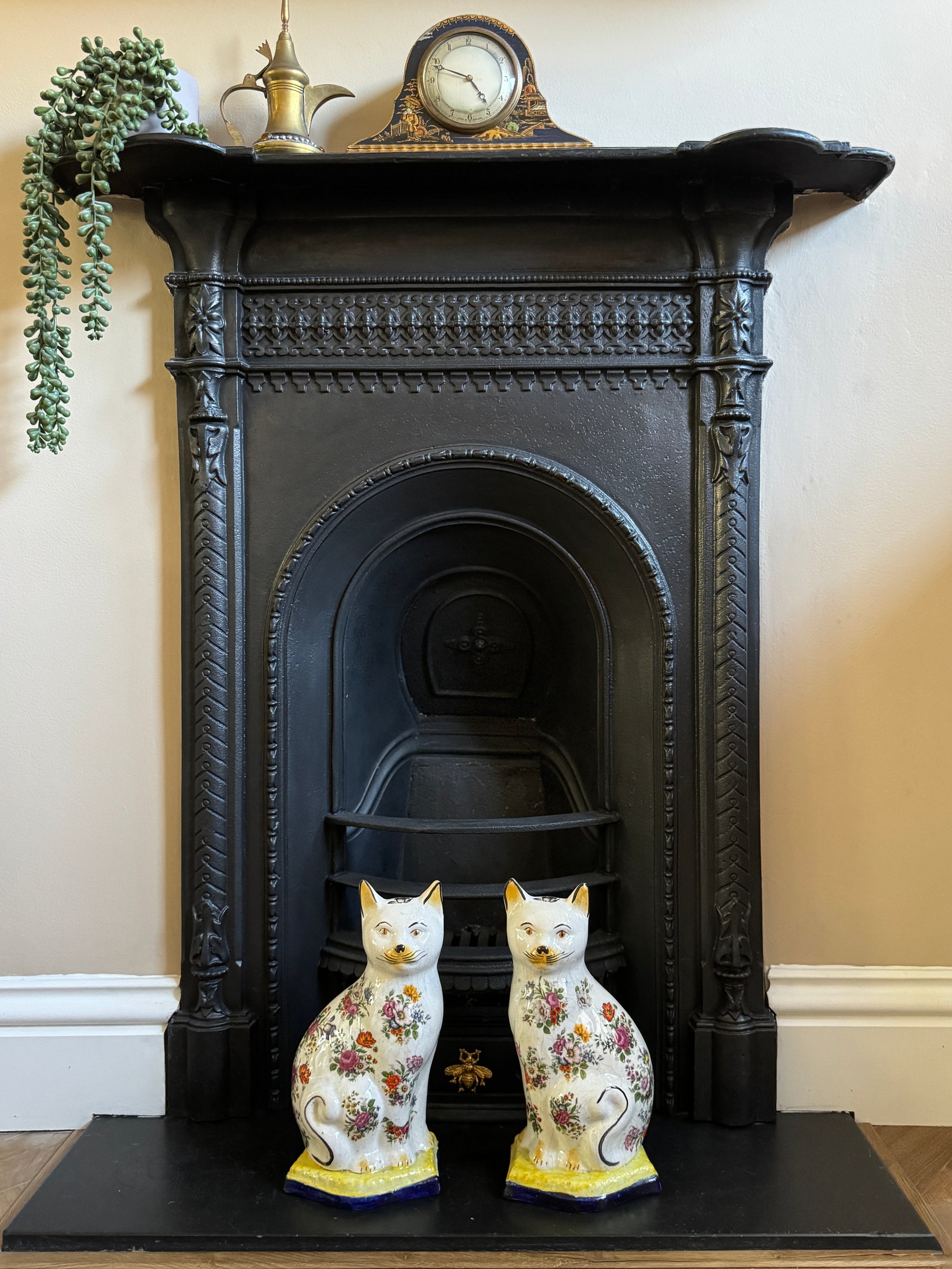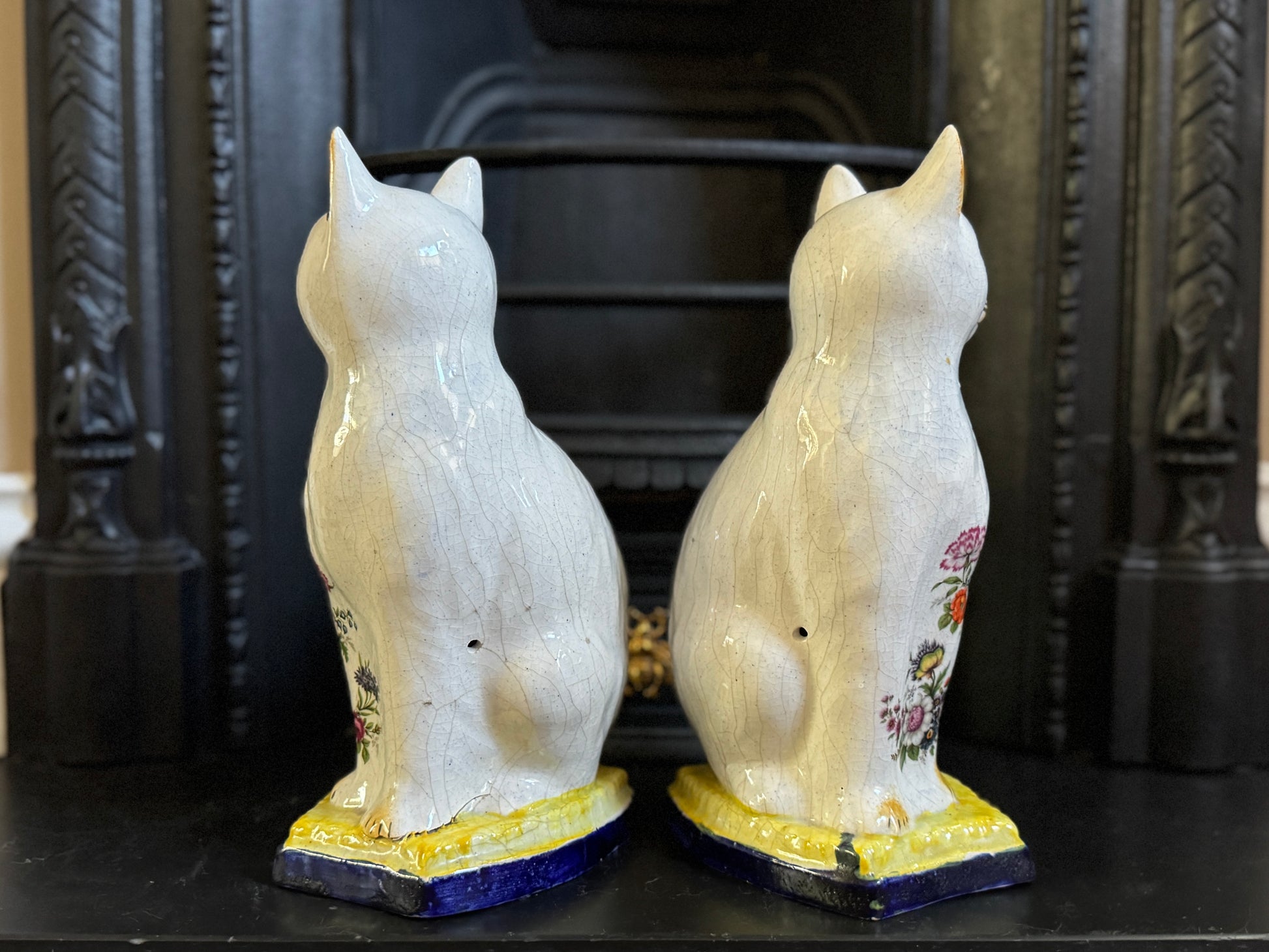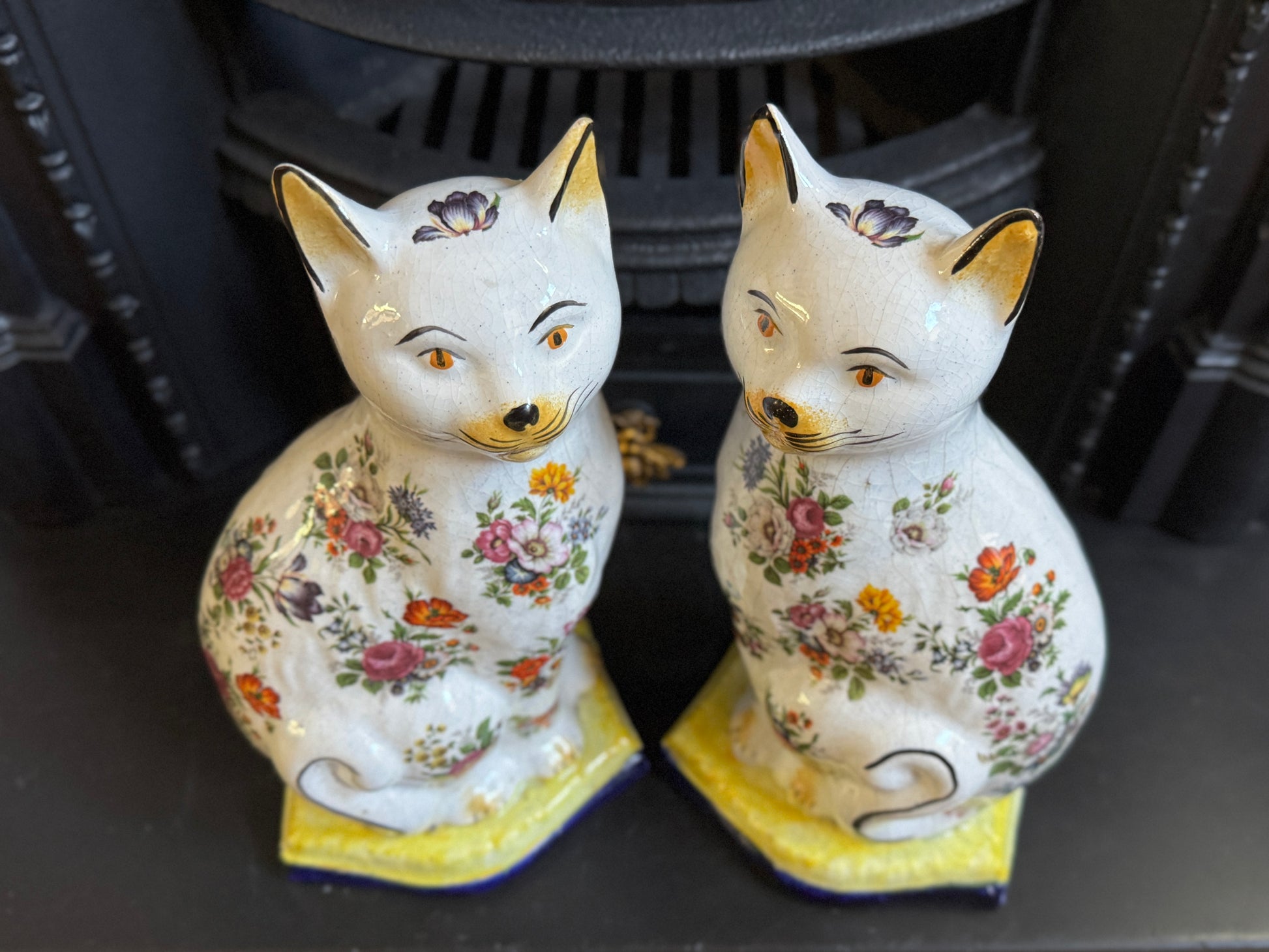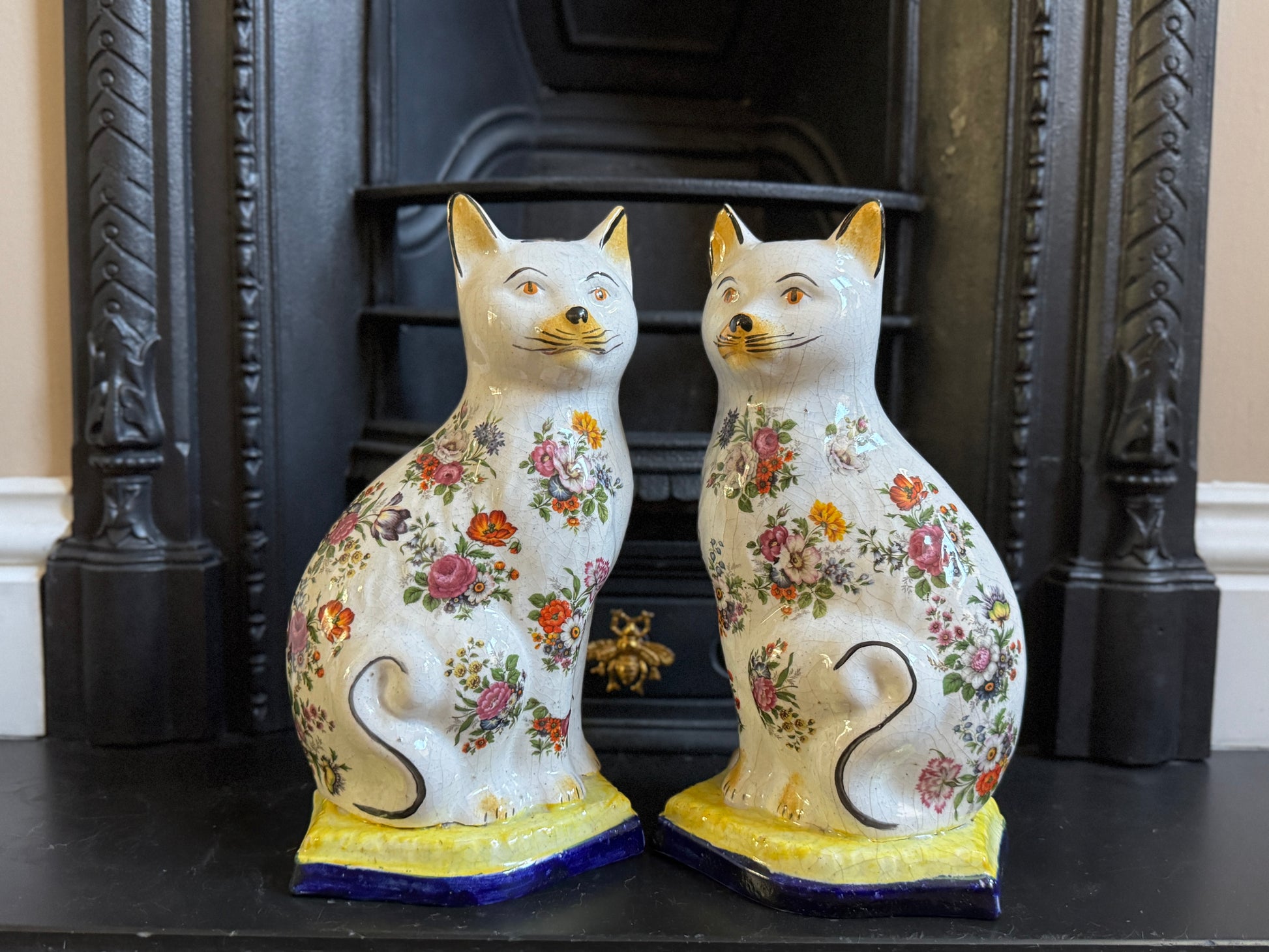 アンティーク、花柄スタッフォードシャーキャット(ペア)|19世紀後期〜20世紀初期頃