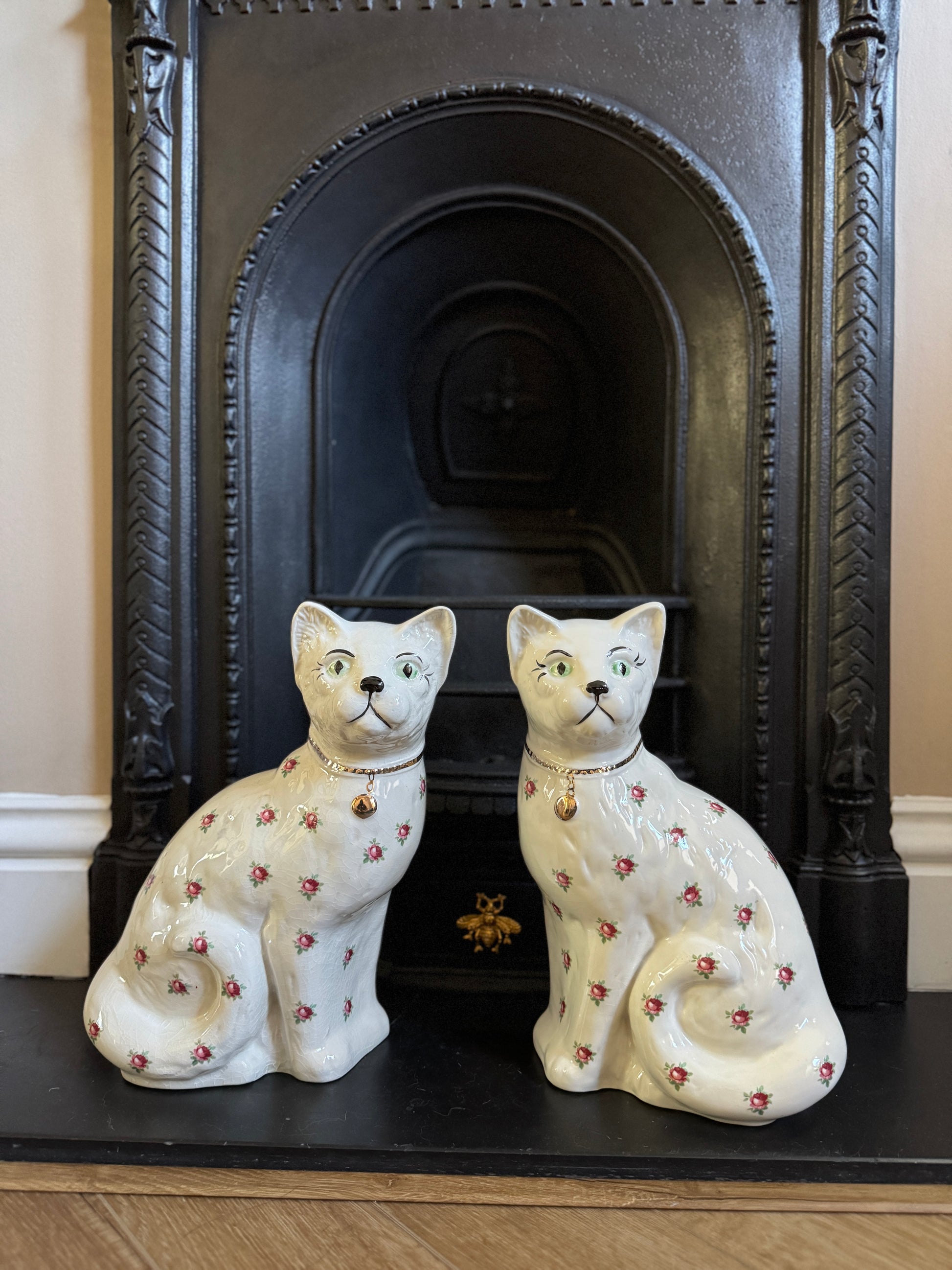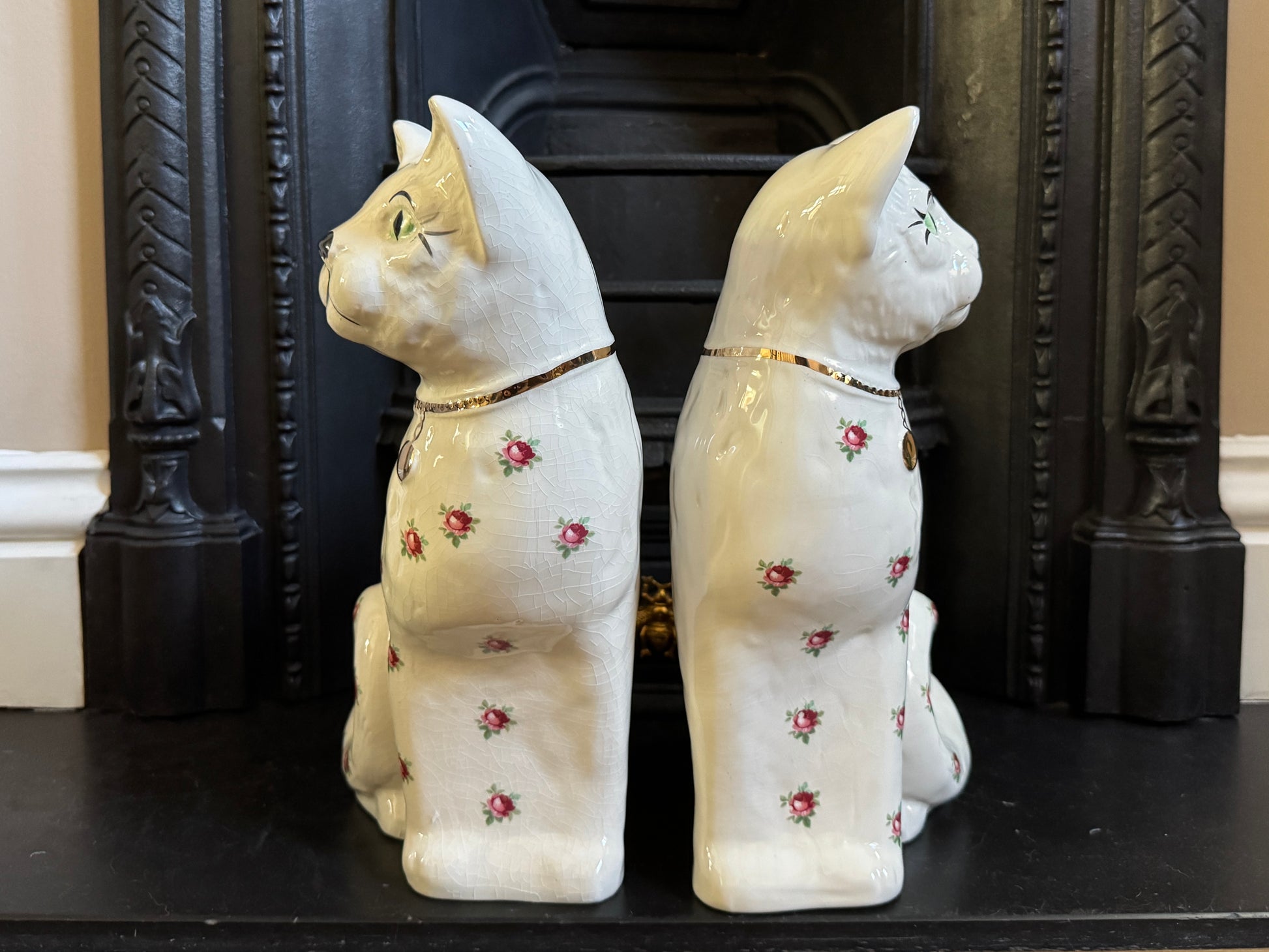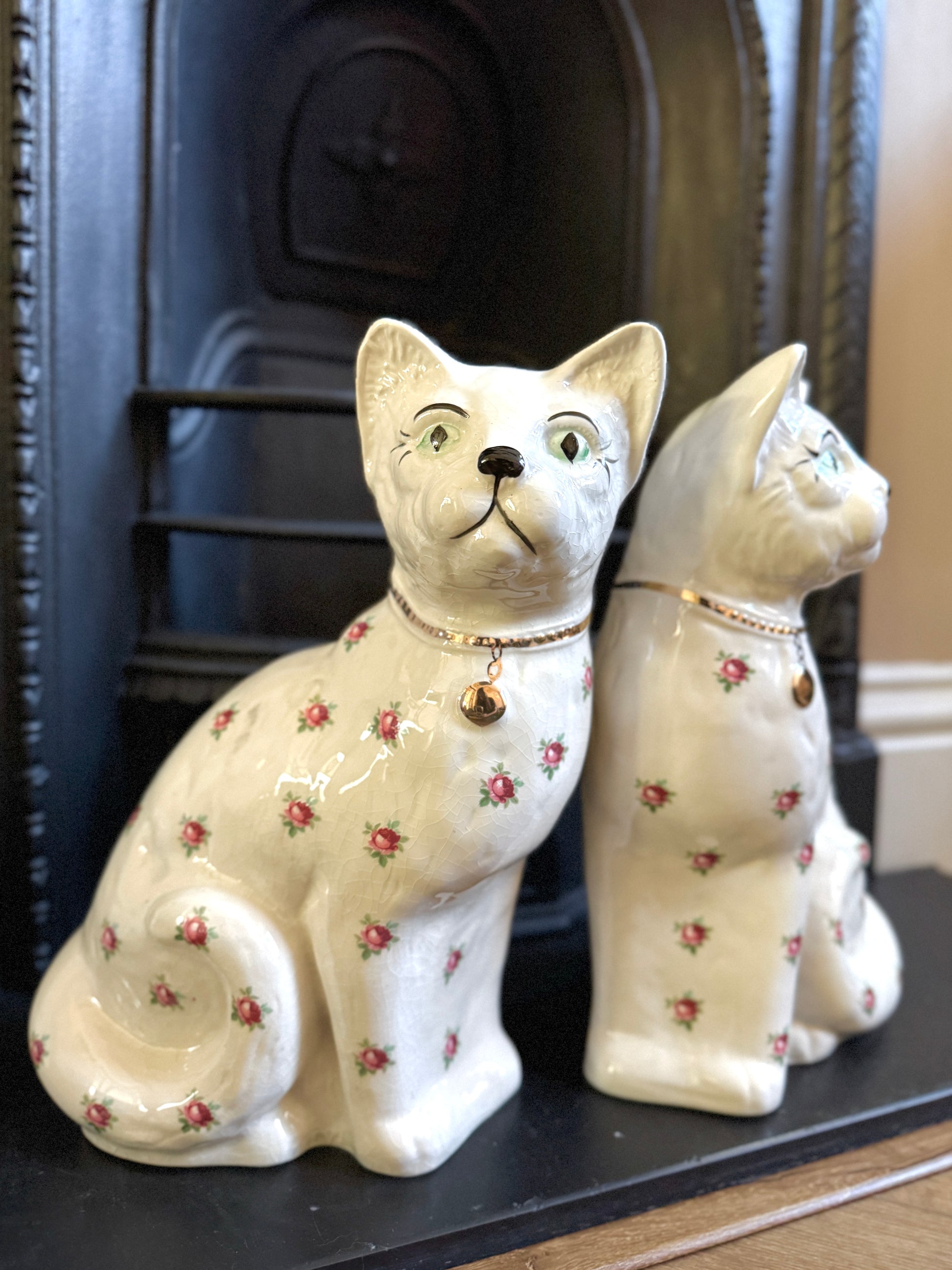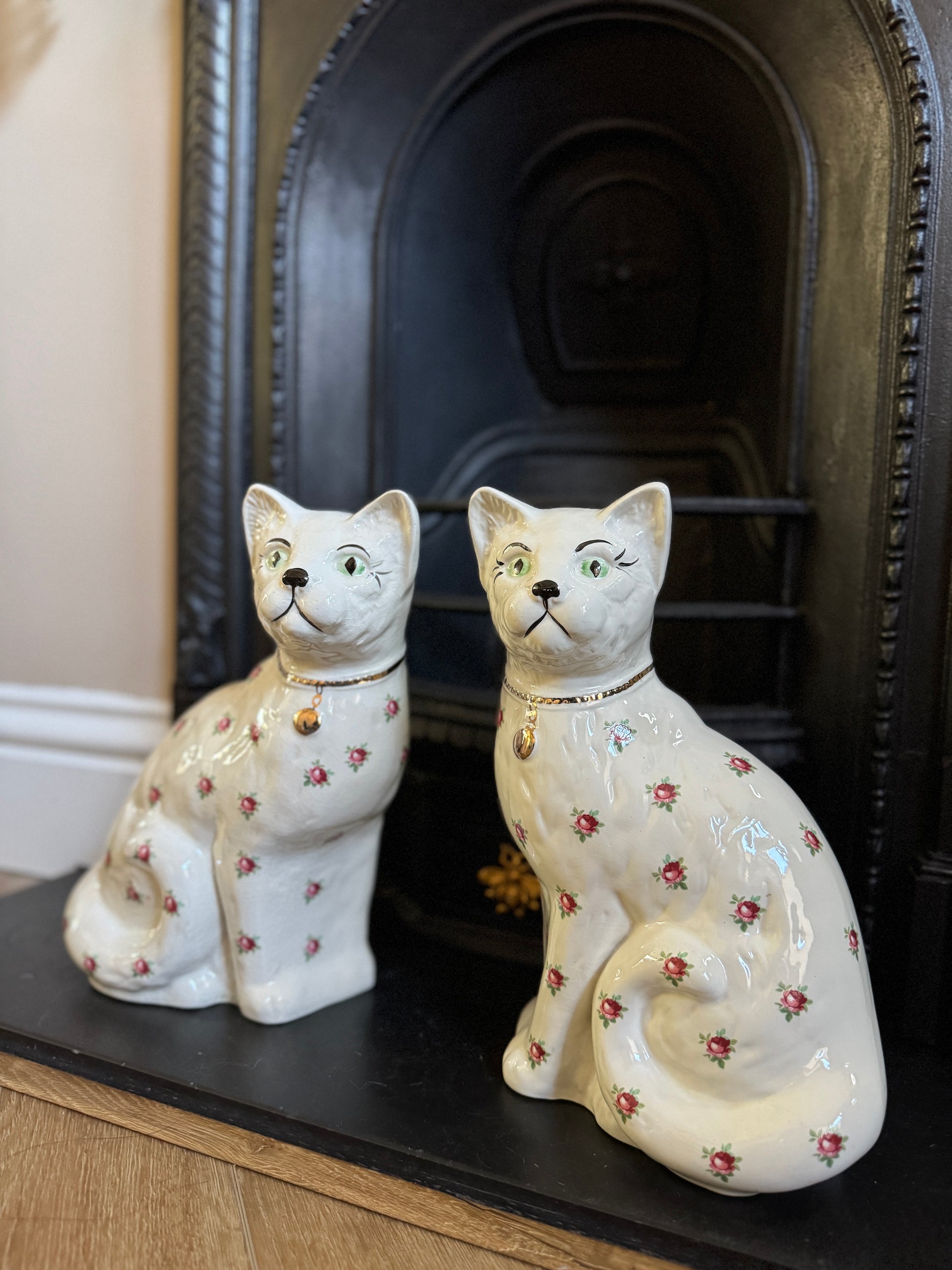 アーサー・ウッド社、スタッフォードシャーキャット(ペア)|ローズ柄|ミッドセンチュリー|約29cm