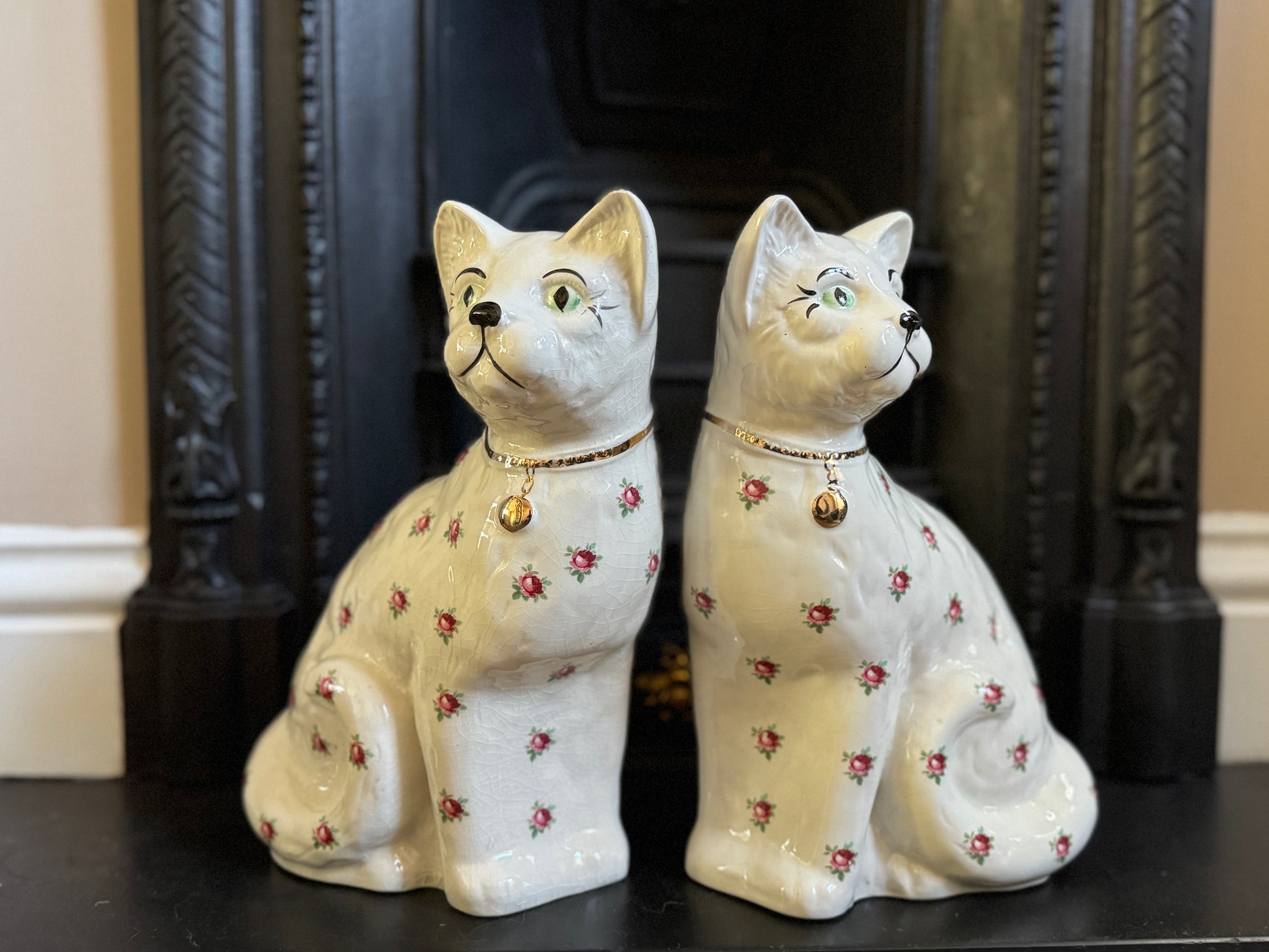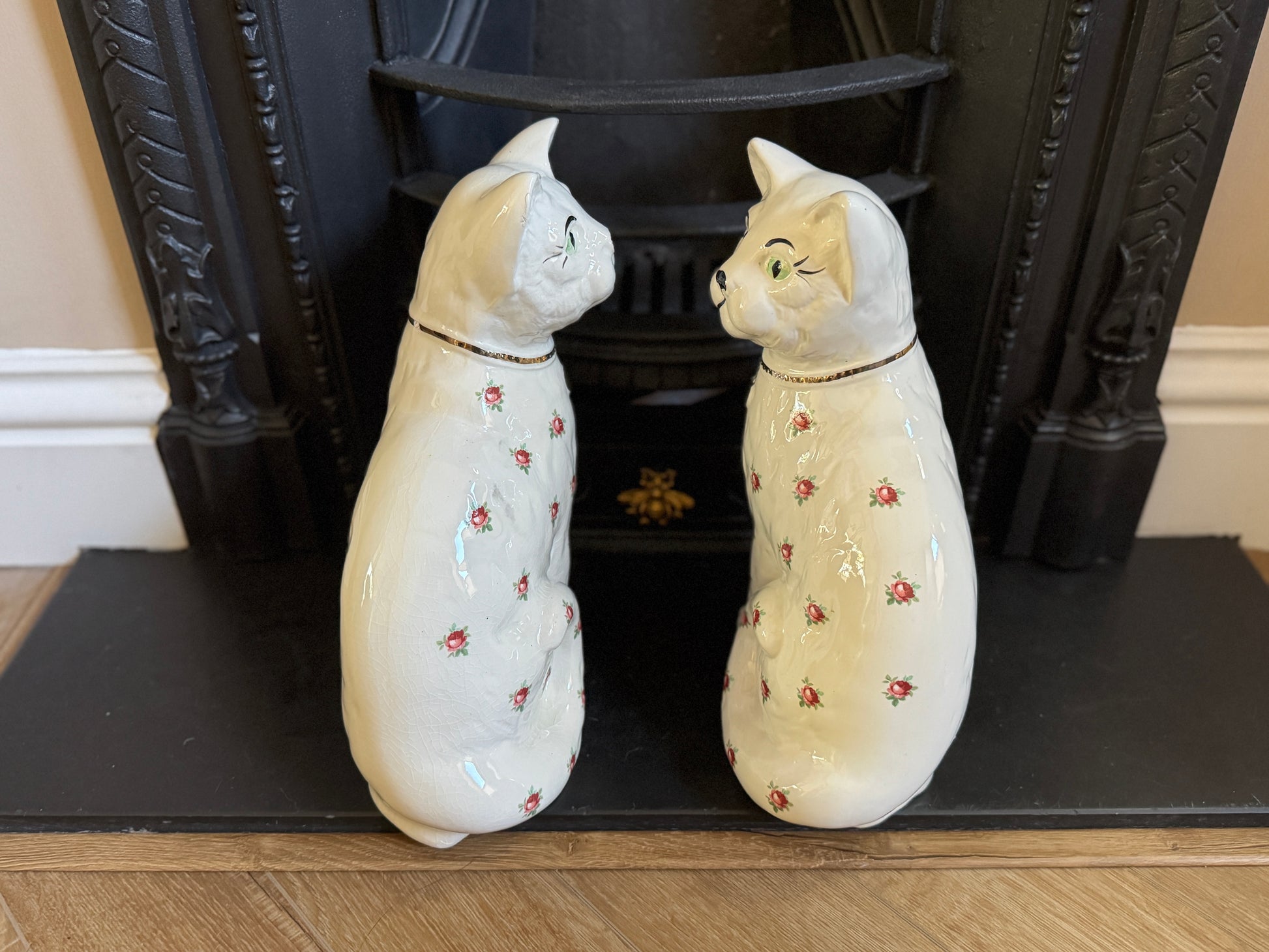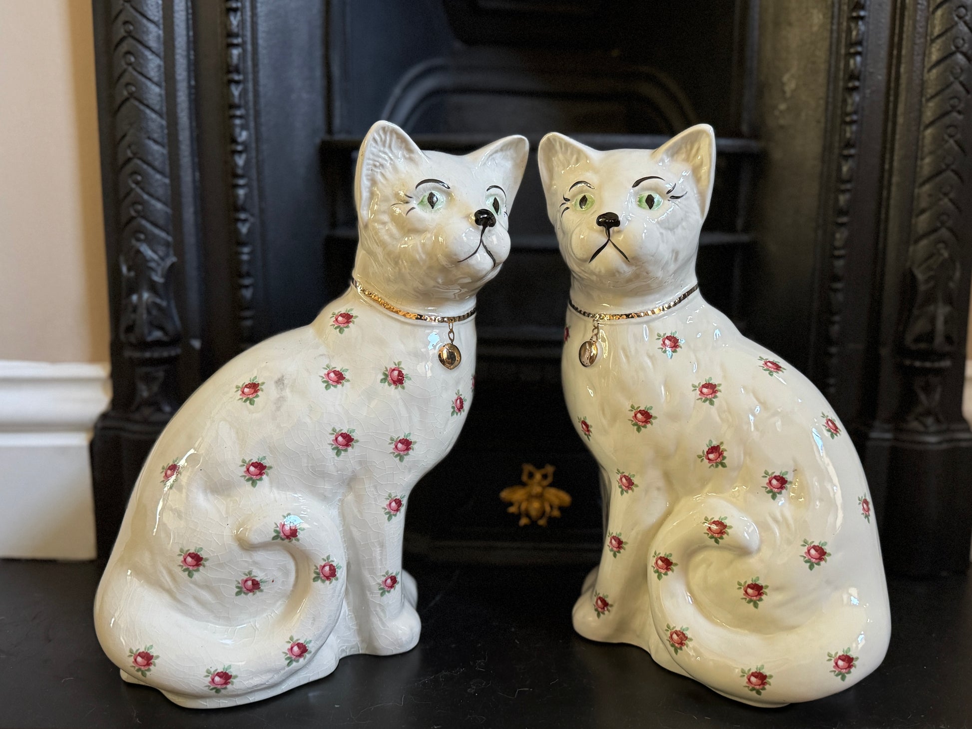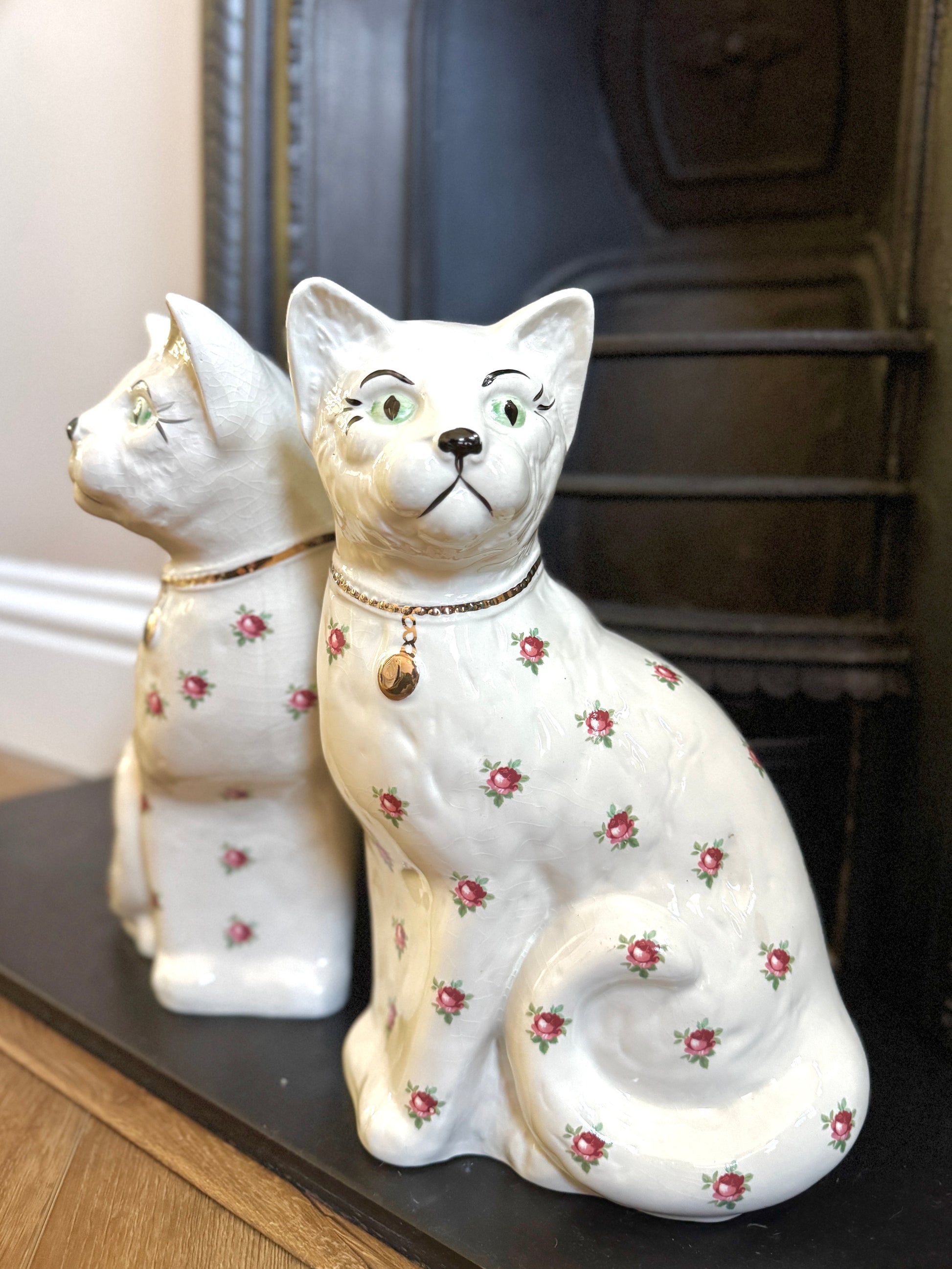 アーサー・ウッド社、スタッフォードシャーキャット(ペア)|ローズ柄|ミッドセンチュリー|約29cm