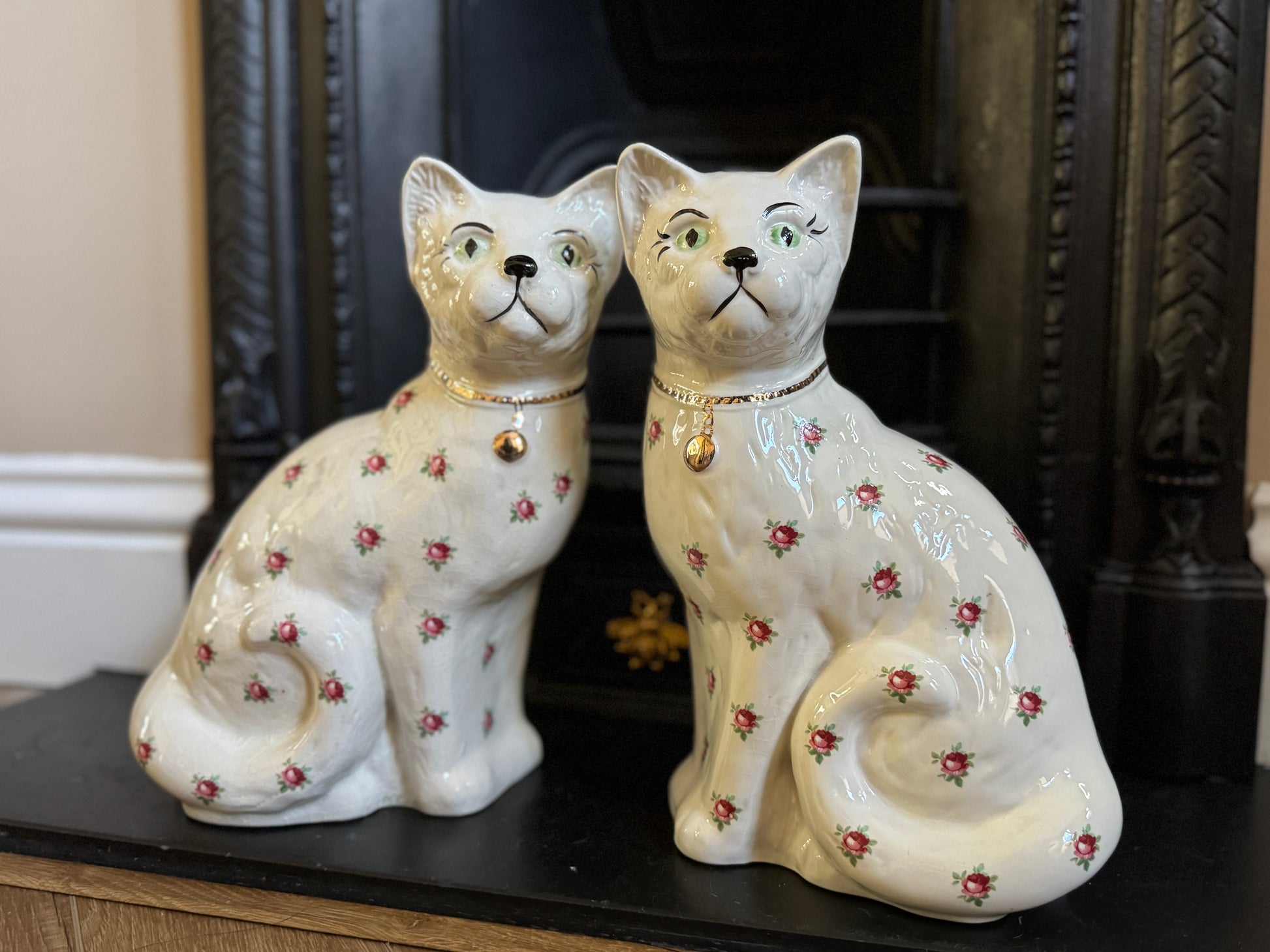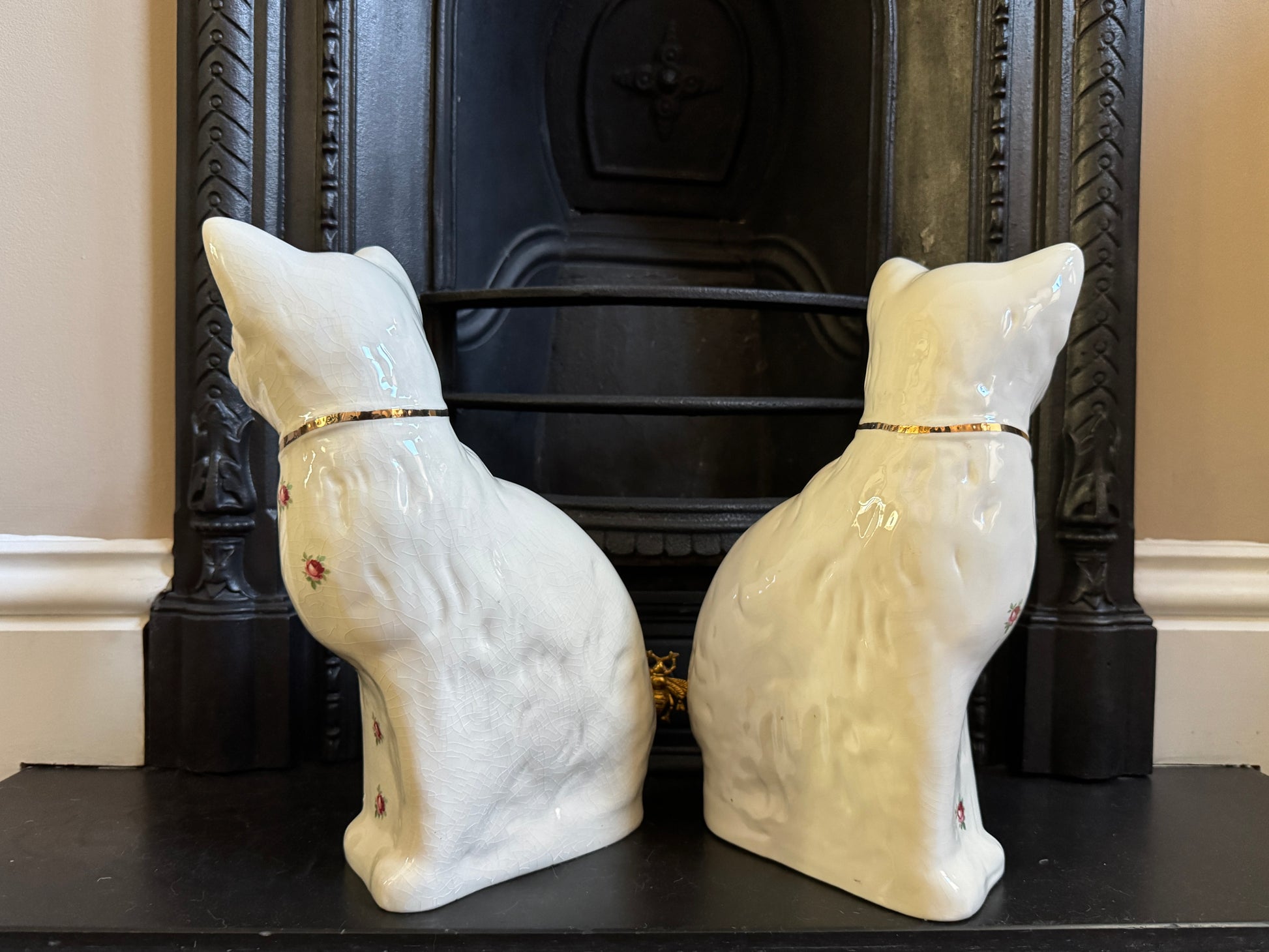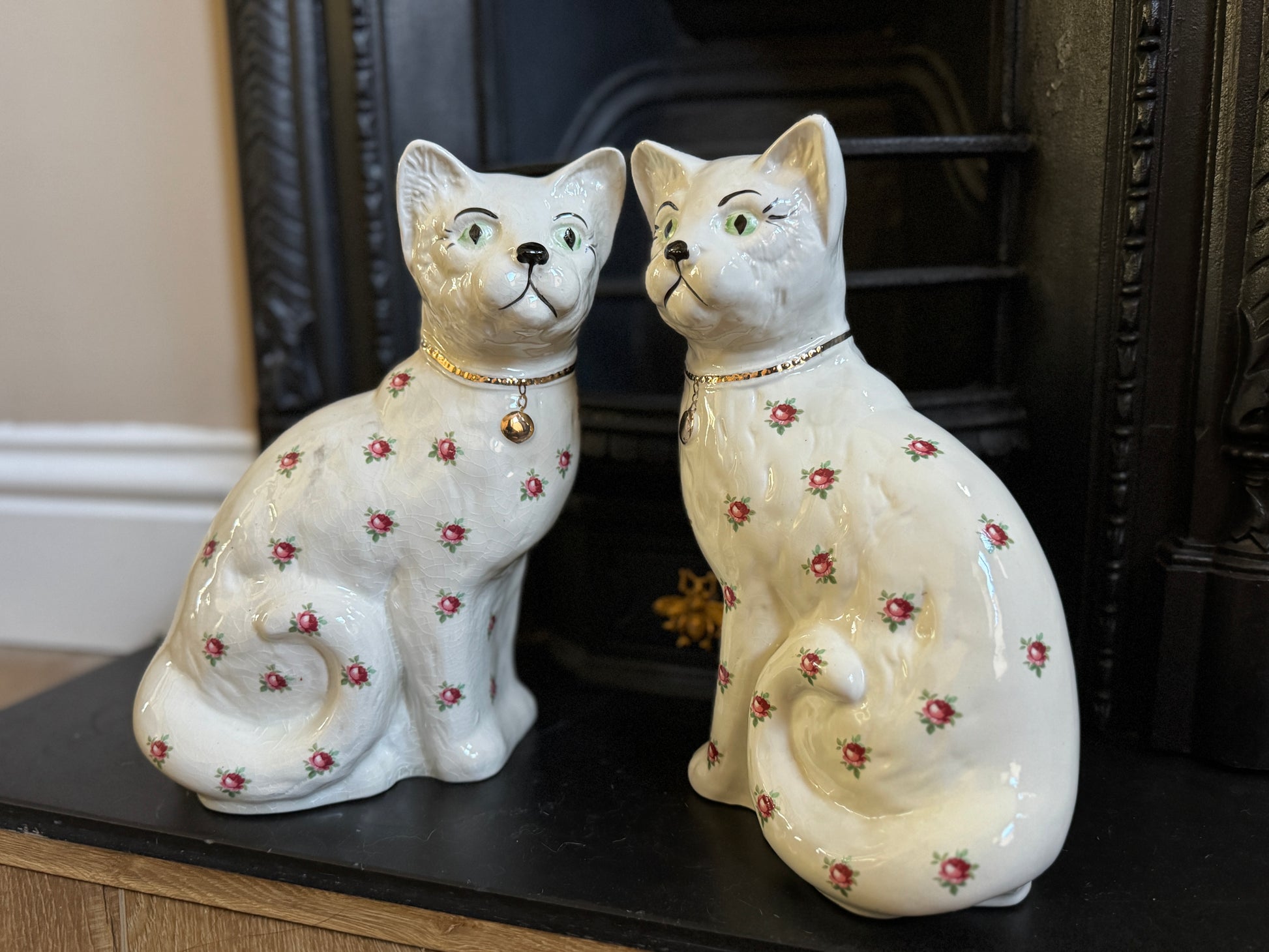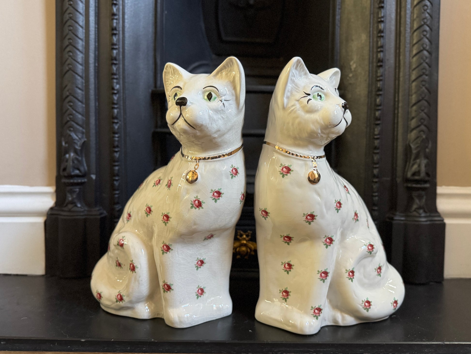 アーサー・ウッド社、スタッフォードシャーキャット(ペア)|ローズ柄|ミッドセンチュリー|約29cm