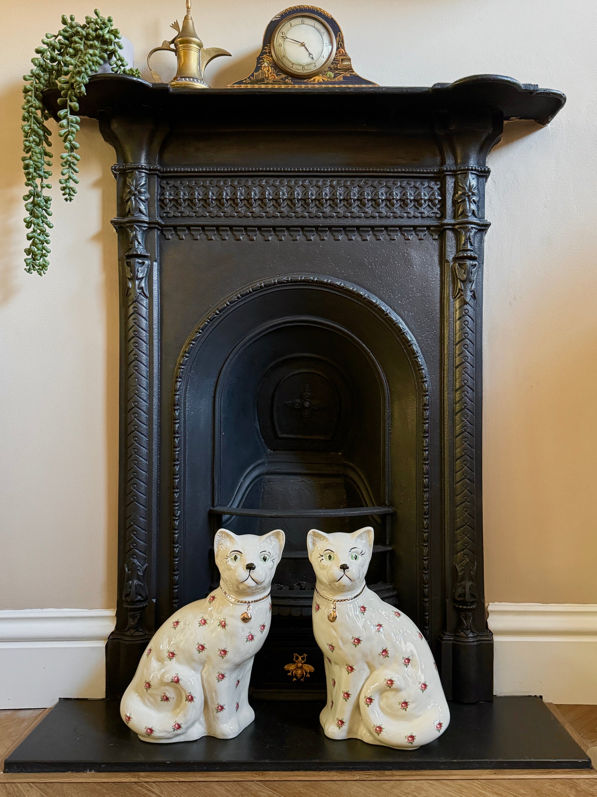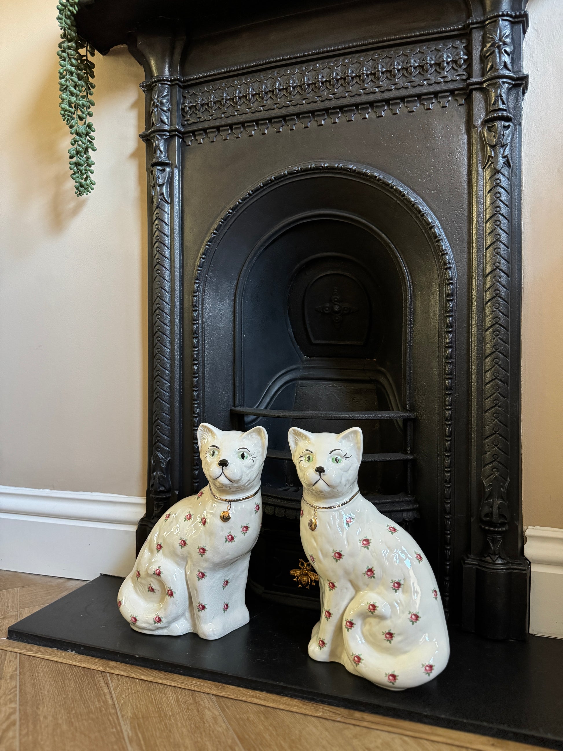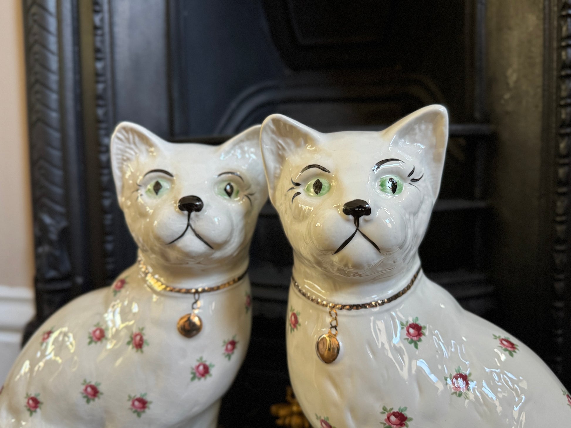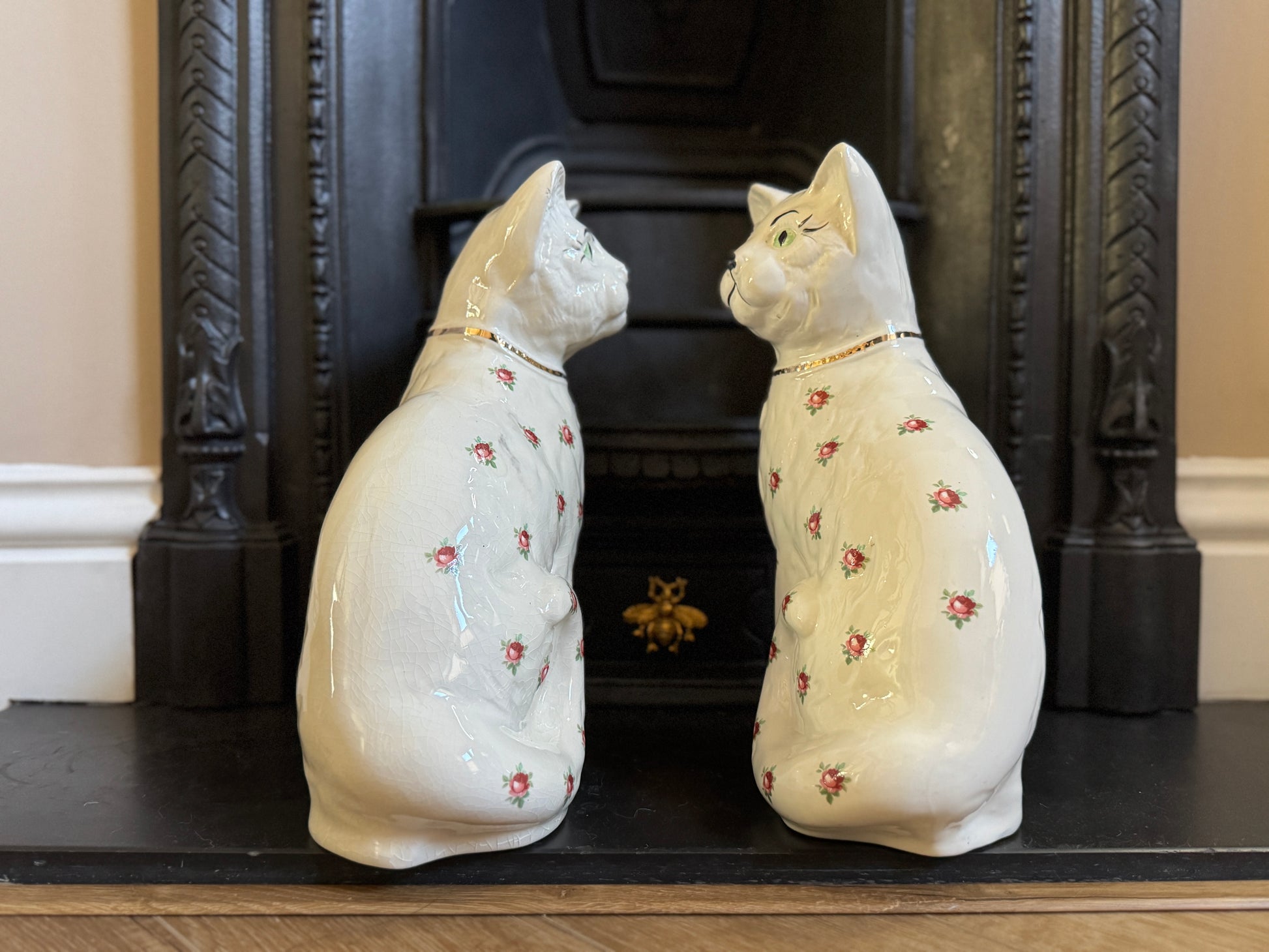アーサー・ウッド社、スタッフォードシャーキャット(ペア)|ローズ柄|ミッドセンチュリー|約29cm