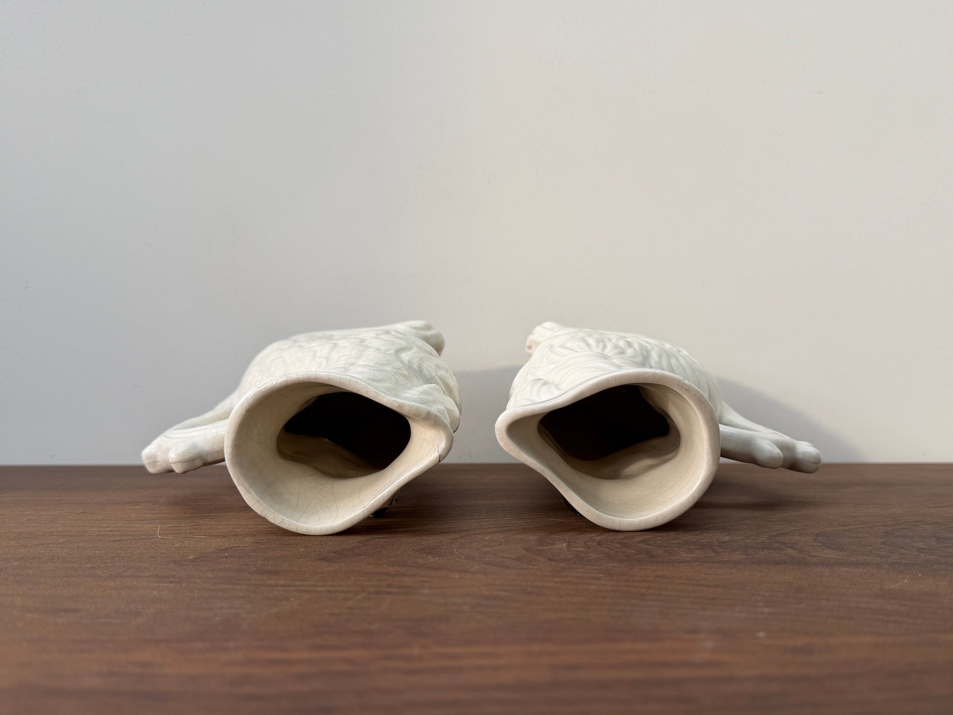 表情や毛並み、首元の装飾はハンドペイントで仕上げられており、それぞれヴィクトリア時代に作られたドッグ特有の愛らしい表情をしています。並べて飾ると、空間に英国クラシックのエレガントなアクセントを添えてくれます。ドライフラワーやアーティフィシャルフラワーを入れてフラワーベースとしてお使いいただいても素敵なインテリアのアクセントになります。