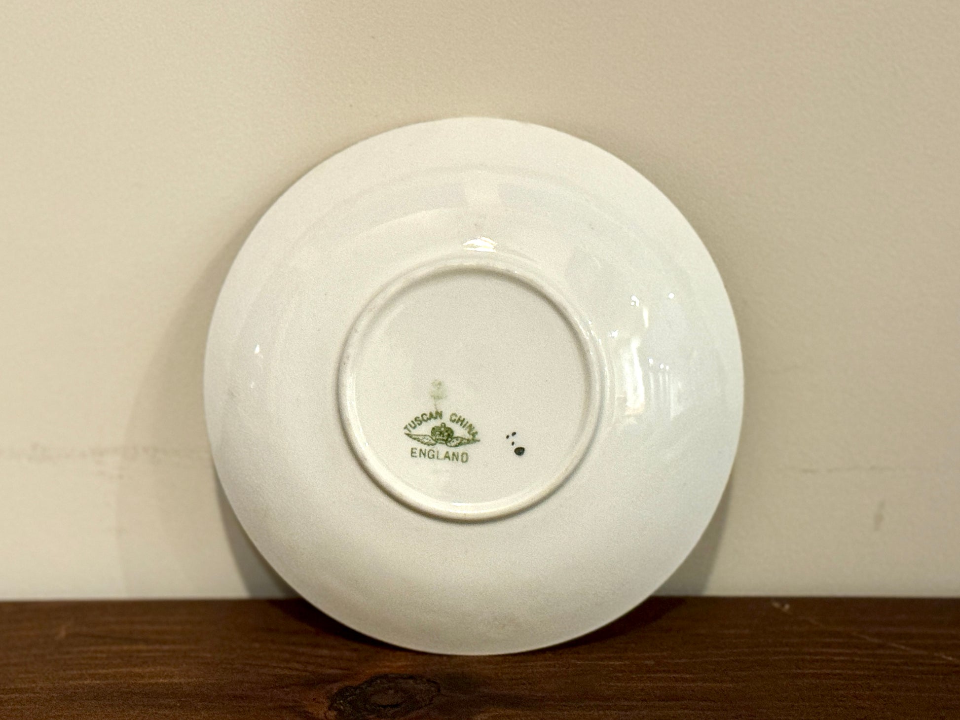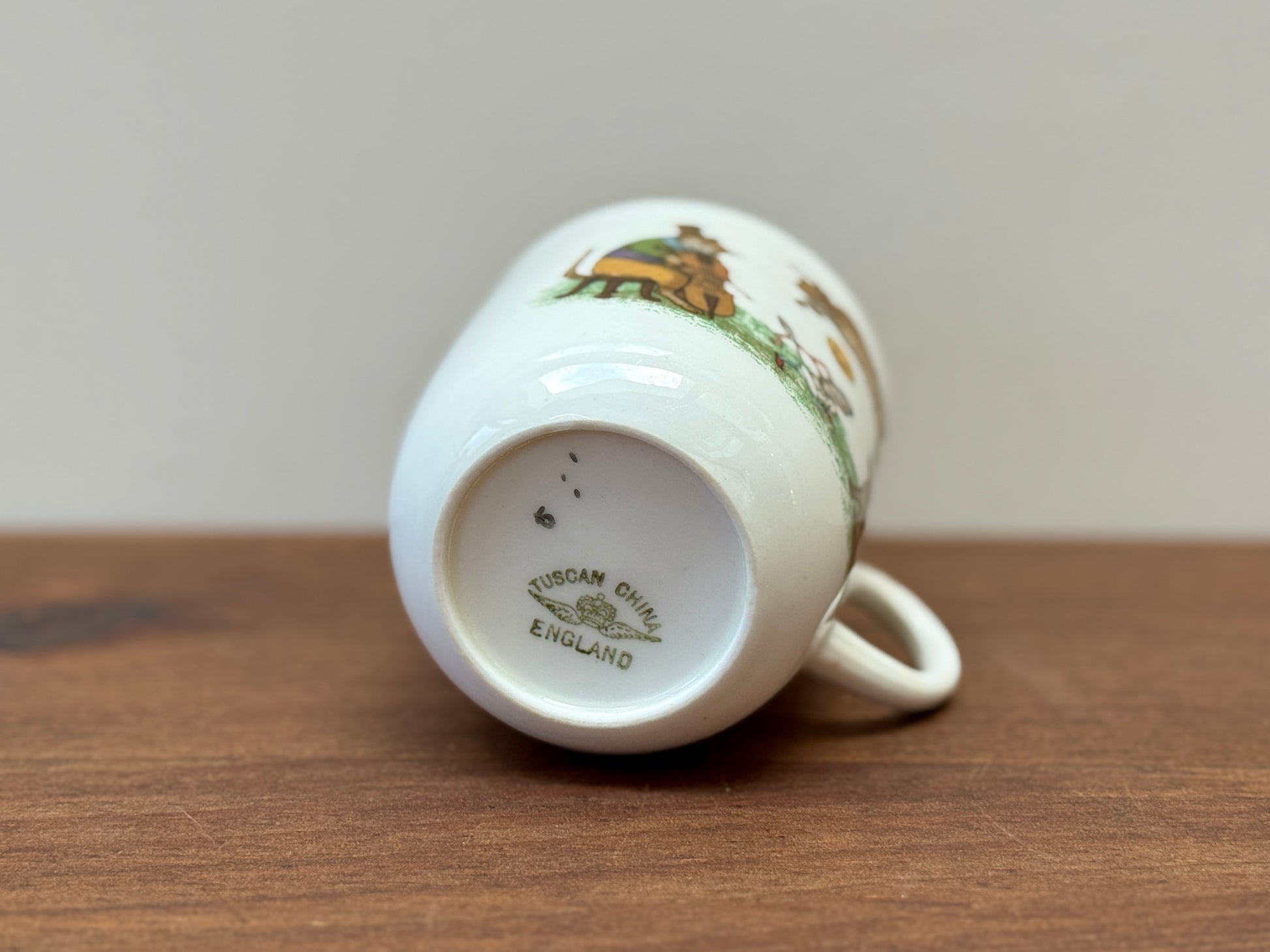 製造元は、スタッフォードシャー・ロングトンの名窯 R H & S L Plant Ltd(Tuscan Works)。のちにウェッジウッド・グループに加わる窯元として知られ、繊細な磁器製品で評価されていました。裏面のバックスタンプが「ENGLAND」表記であることから、1920年以前(c.1910年代)の初期製造品であることがわかります。初期Tuscanのナーサリーシリーズは現存数も多くなく、柔らかな絵柄とやさしい磁器の質感が魅力です。