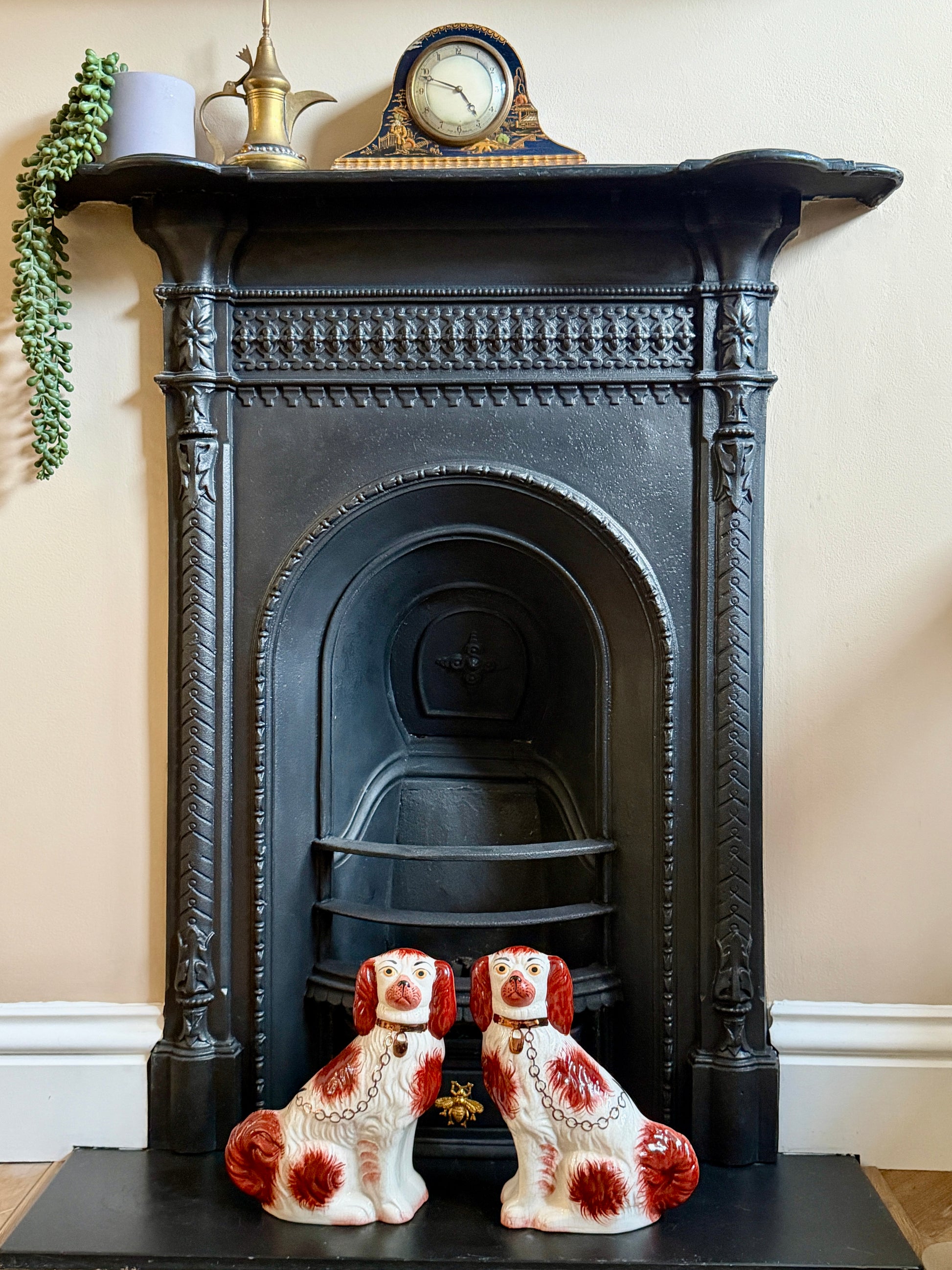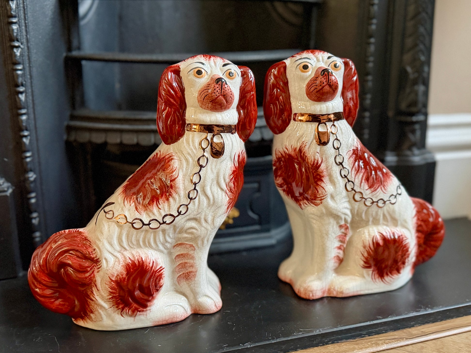 玄関やリビングの飾り棚、サイドボード、暖炉まわりなどに置くだけで、お部屋に英国らしい温かみとチャーミングさを添えてくれるペアです。犬モチーフがお好きな方、クラシック・カントリースタイル・ヨーロピアンヴィンテージのインテリアがお好きな方にもおすすめです。